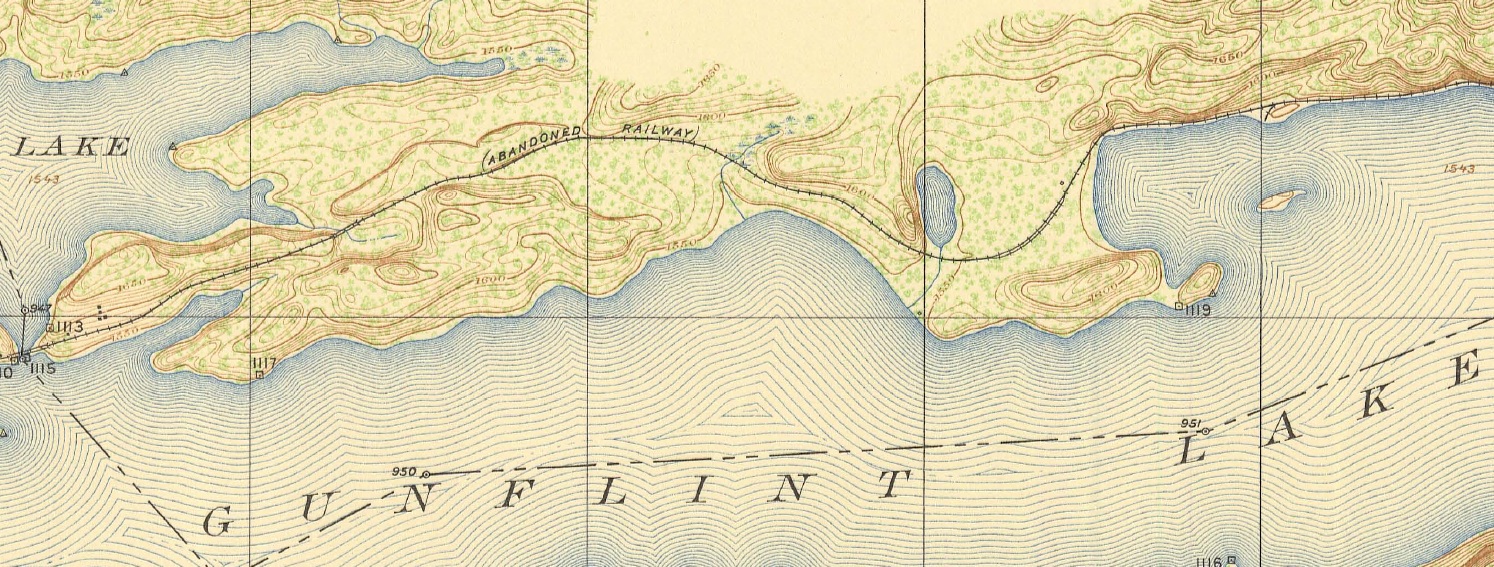 In response to my inquiry, Bruce sent me a map that completely shocked me. I was aware that there were several buildings at the site, but Bruce’s map showed the locations of 8 structures on top of the station beside the grade. Unfortunately this information has provided me with yet another mystery; if there were so many structures at Leeblain, why are they not on the 1911 Boundary Map? My theory is that some buildings, such the trading post/hotel, were shifted to Gunflint Narrows. I can’t wait until the spring so I can get out to Leeblain and do some exploring!