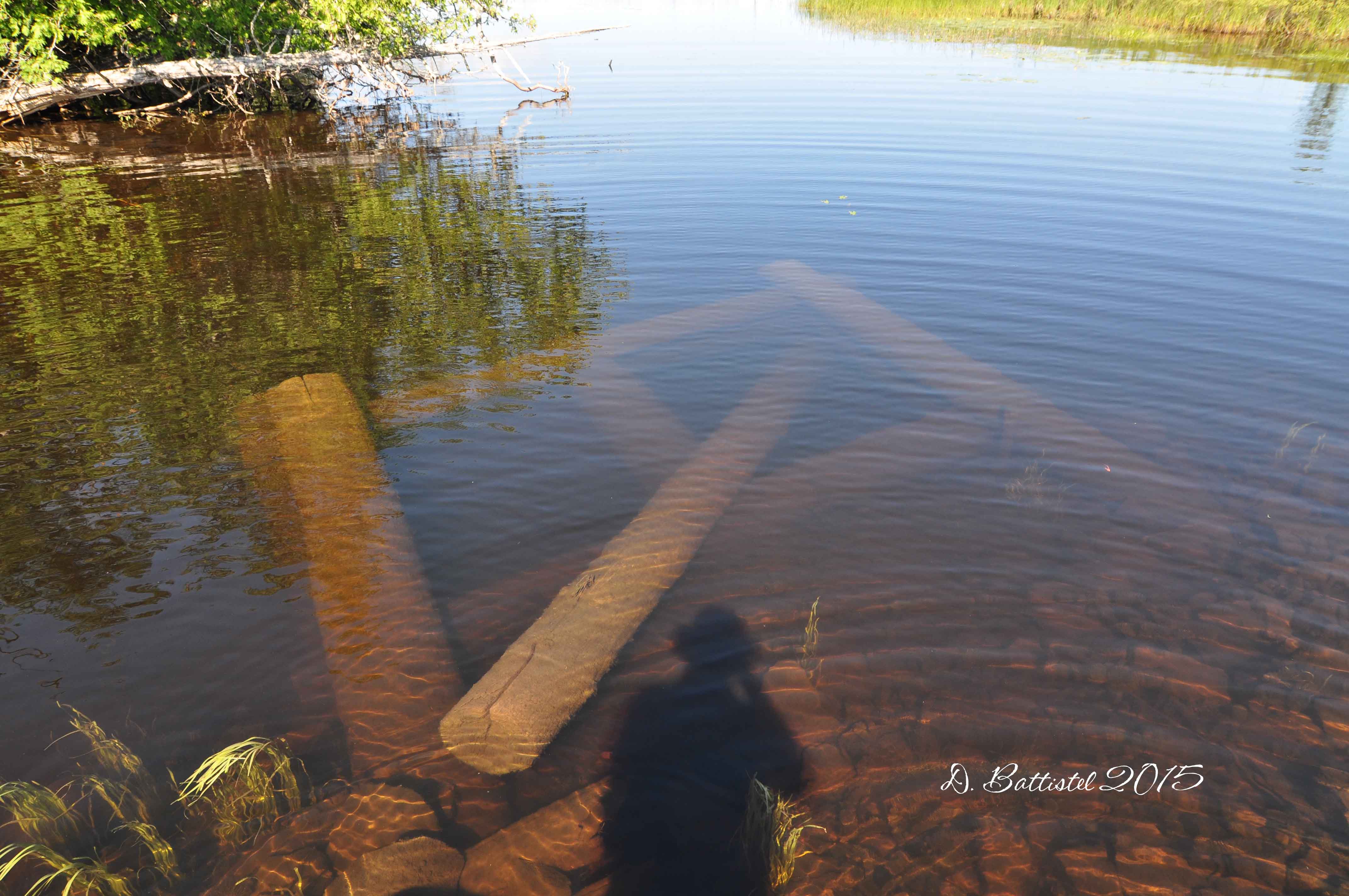 Wednesday morning dawned bright, clear and most importantly, very calm. Following a hearty breakfast, it was off across the lake for a free day of exploring; it was exhilarating zooming across the flat water at full throttle. Gunflint is such a beautiful place…I wish I could spend more time doing exactly that. The plan for the day was to look around the bridge crossing south of the border (I’d been there many times before, but I was hoping the water was lower) and then walk the grade toward Camp 4 from that point.