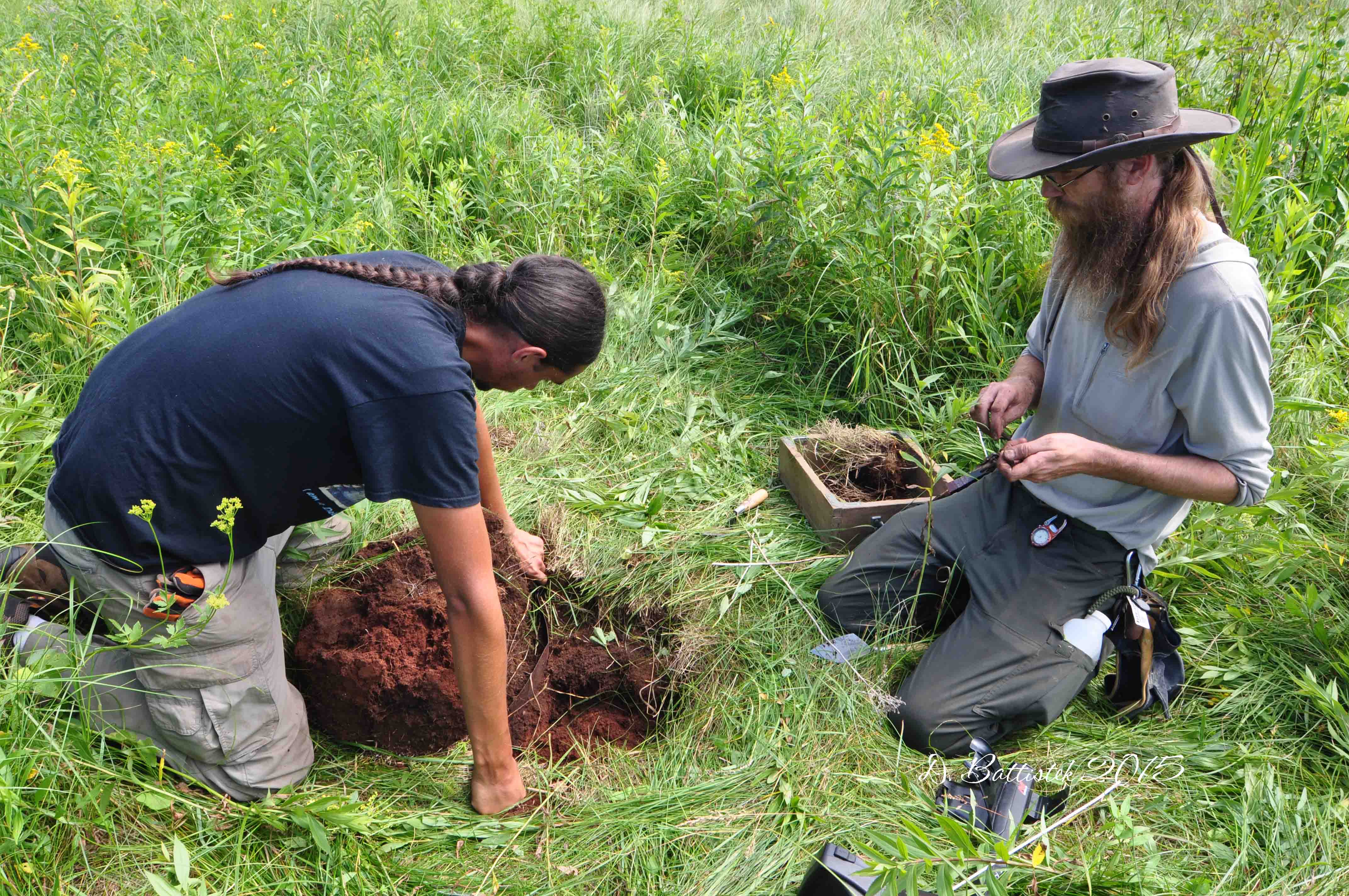 Once ashore, we got our gear together and started with a little tour of the area. The group consisted of myself, Superior National Forest archaeologist Ryan Brown, University of Minnesota-Duluth archaeology professor Sue Mulholland, and two students, John and Eric. I showed the group some of the areas and objects I had discovered, mostly on the surface as I did not want to disturb the soil. Afterwards, Ryan wanted to start working an area of interest he had noted back in 2011.
