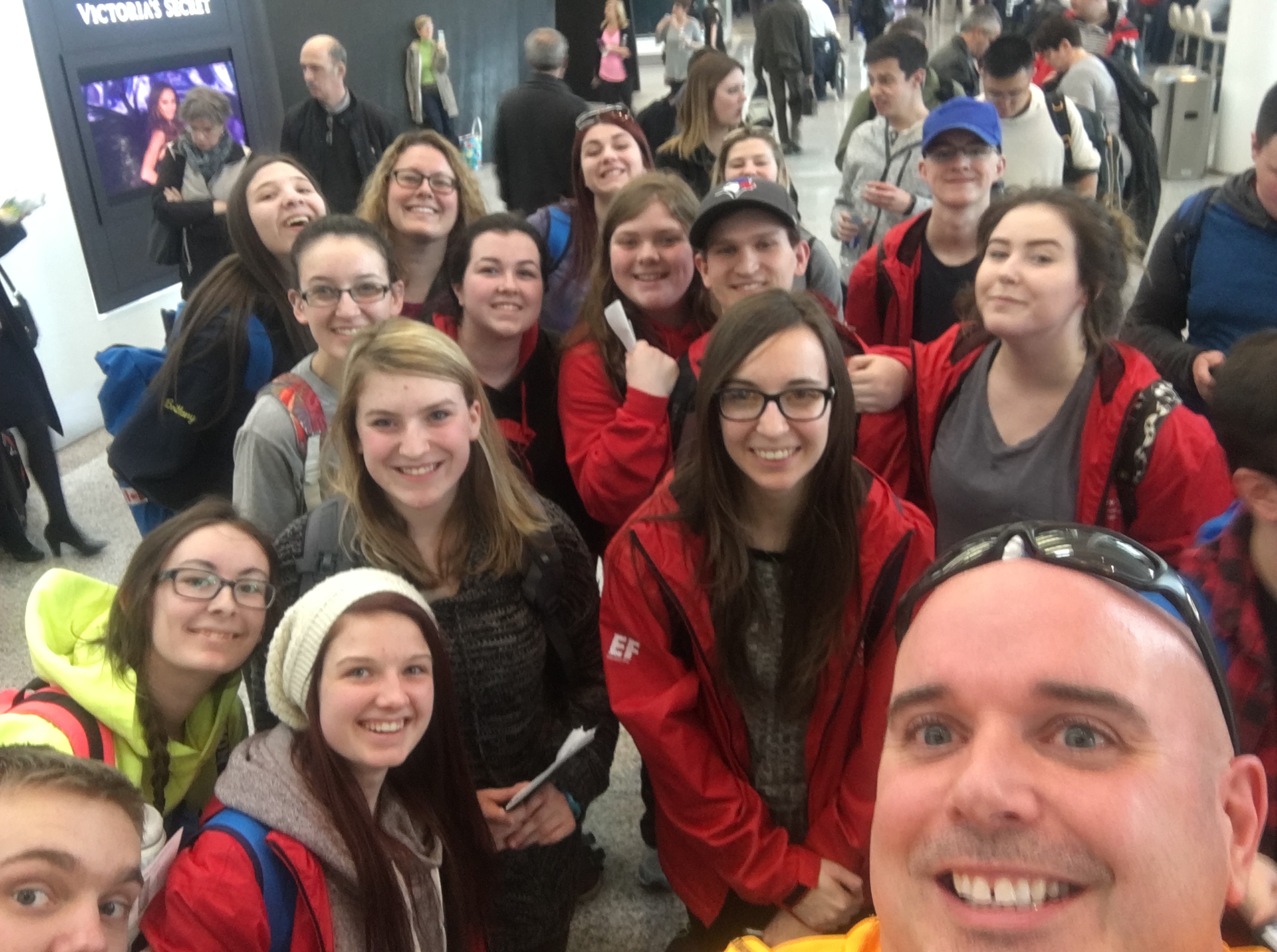 Well, we’re sitting here in the secure area of the Thunder Bay airport, patiently waiting for our flight. The kids are just wired, as I’m sure I was way back in 1992 on my school trip to Europe (and Ms. Caza too). I am feeling a little more relaxed, but I’ll breathe a sigh of relief once we are on the flight to Europe. I’m an impatient person (though I’ve gotten better since I became a parent) and this waiting thing kills me.