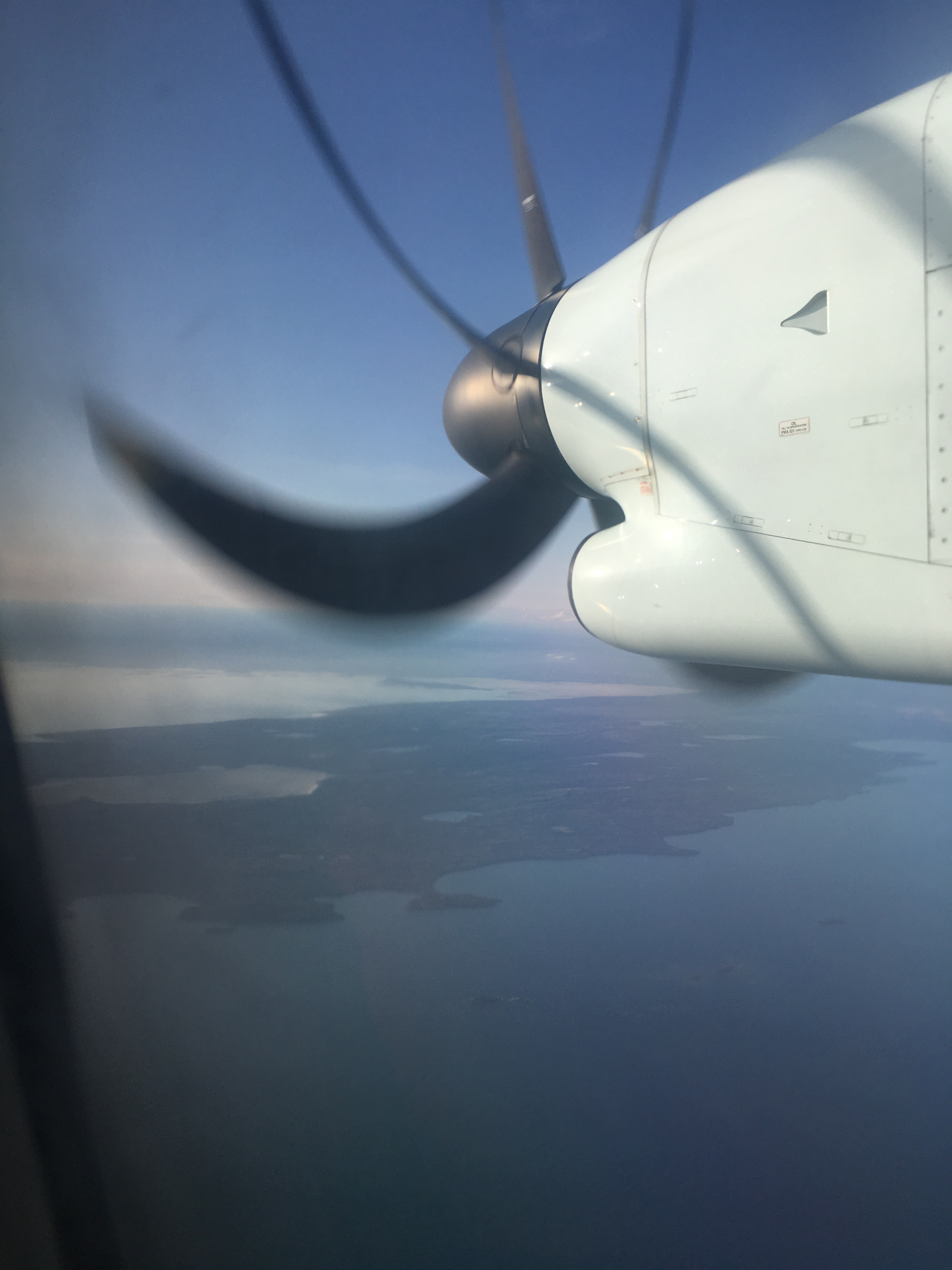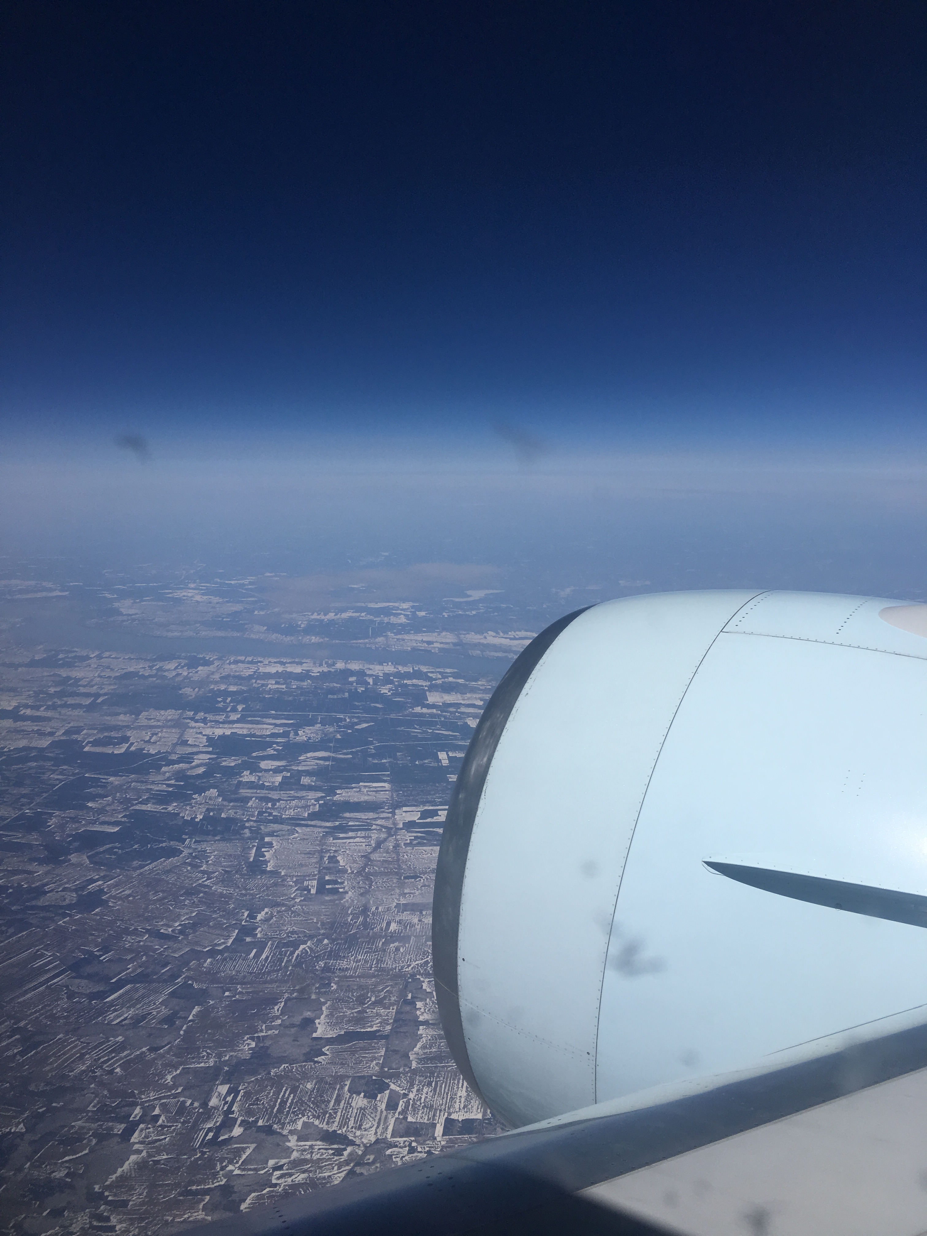 Inside terminal, it was a slow process getting checked in as the computers at Air Canada were glitchy. There were long lines at customs and security, so we made it to the gate just before boarding, albeit in groups or varying size. I’m trying to relax now as much as I can, since issues in Canada are much easier to deal with. Happy thoughts. I’m watching Rogue One (yay) and they are starting to serve lunch which will help. We’re approaching the coast of France…only 5800k to go!