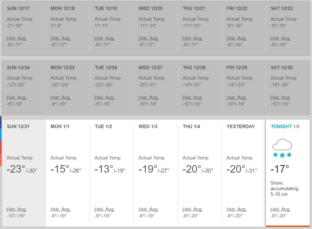 The only issue during the break has been the detestable weather. What, me, complain about the weather…never! Holy frick it’s been cold! Not the coldest I’ve seen, but the warmest it’s been in the last two weeks is -14C; when you consider that balmy, something is wrong. Nothing like it was this time last year! I guess it could be worse, but it just sucks when you can’t really leave the house because it’s so cold outside. We did a few things, including going to camp for a few hours, but we spent a lot of time indoors. The only thing that makes me feel better is that simply looking at a weather map will tell you that many other people are sharing our misery. Hopefully dealing with this Arctic air mass now will translate into a warmer summer.