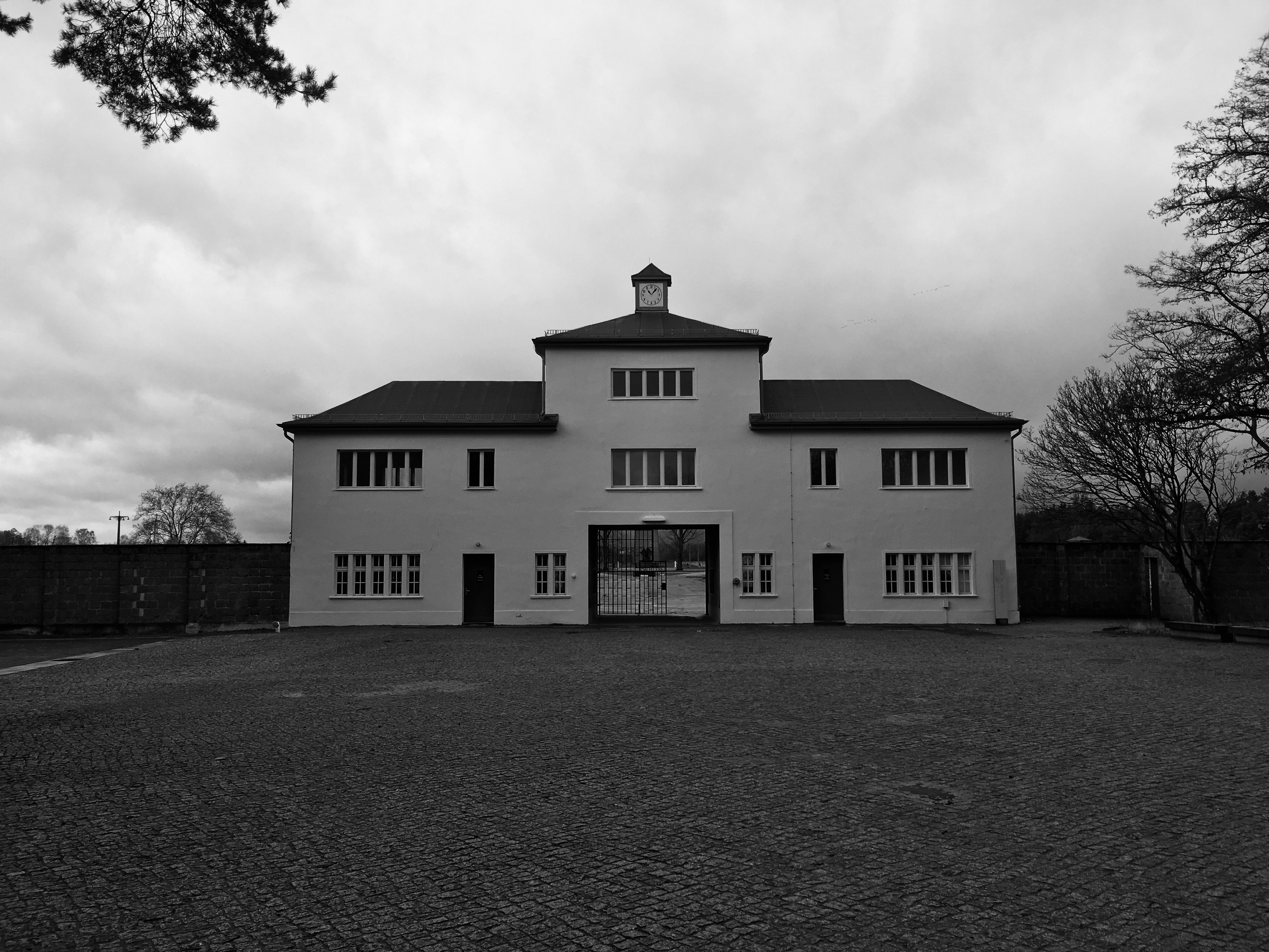 Main gate, Sachsenhausen concentration camp, March 2019.