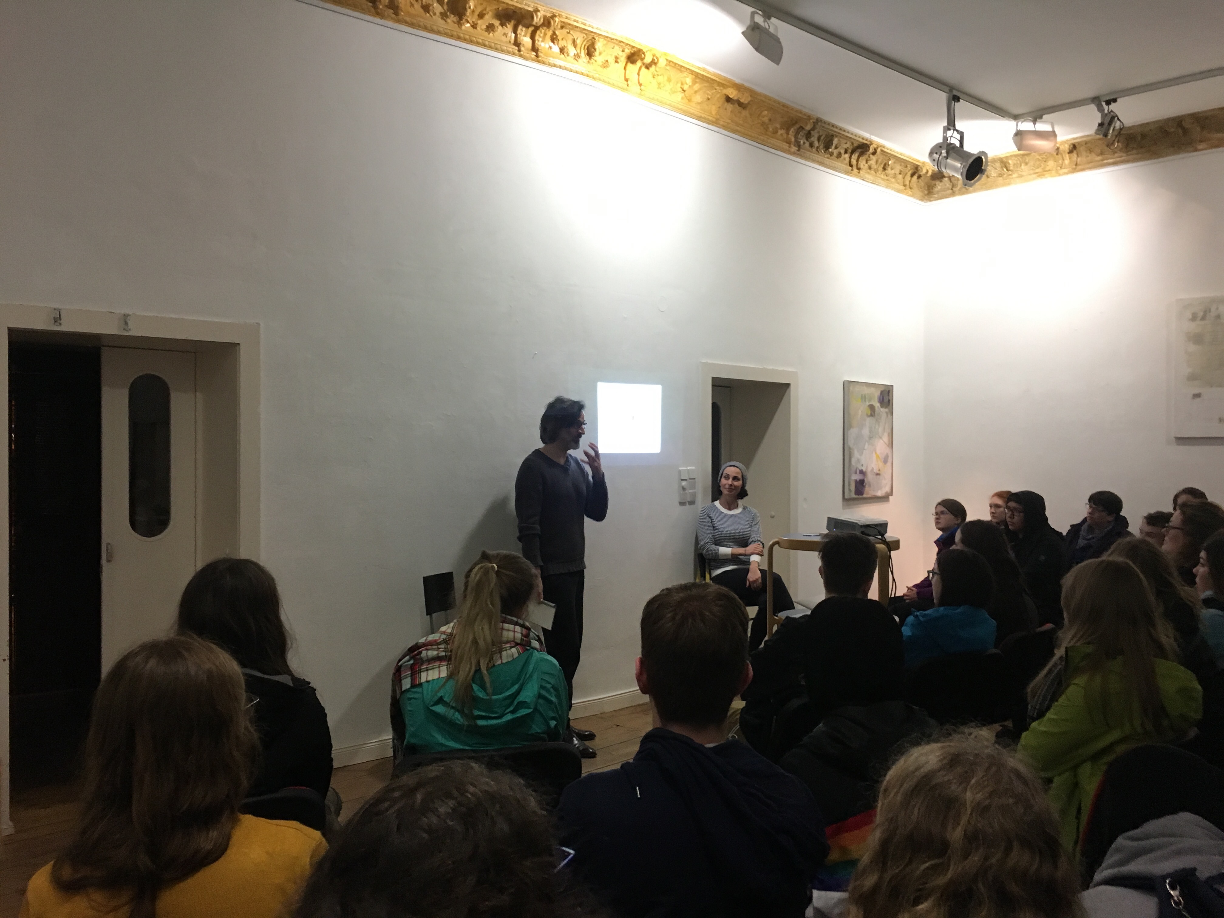 We left the restaurant and made our way to the train station. So, if the kids had never rode a train/subway before, boy they are well versed now. To get to our next event, a Cold War discussion, we had to take several different trains to get to Südstern. Our presenters, Peter and Emme, were residents of West and East Germany respectively. They described the rise and fall of the Berlin Wall and how it effected them. Afterwards, it was back on a couple different trains to get to the stop near our hotel, Grünbergallee.