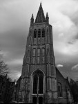 Alright, so I’m sitting here in the lobby of the Cloth Hall, the Flanders Fields Museum, waiting for everyone to finish their visit. Our first stop upon reaching the Ypres area was the St. Julien Memorial (Sint-Juliaan). The memorial, a statue, is known as the Brooding Soldier and marks the first Canadian action in WWI at the Second Battle of Ypres. Here, near St. Julien, the Canadians fought a desperate 3-day battle against the Germans to hold back a massive attack which included the first use of poison gas in war. It was rainy and very windy, but we managed a quick prayer and a group photo.