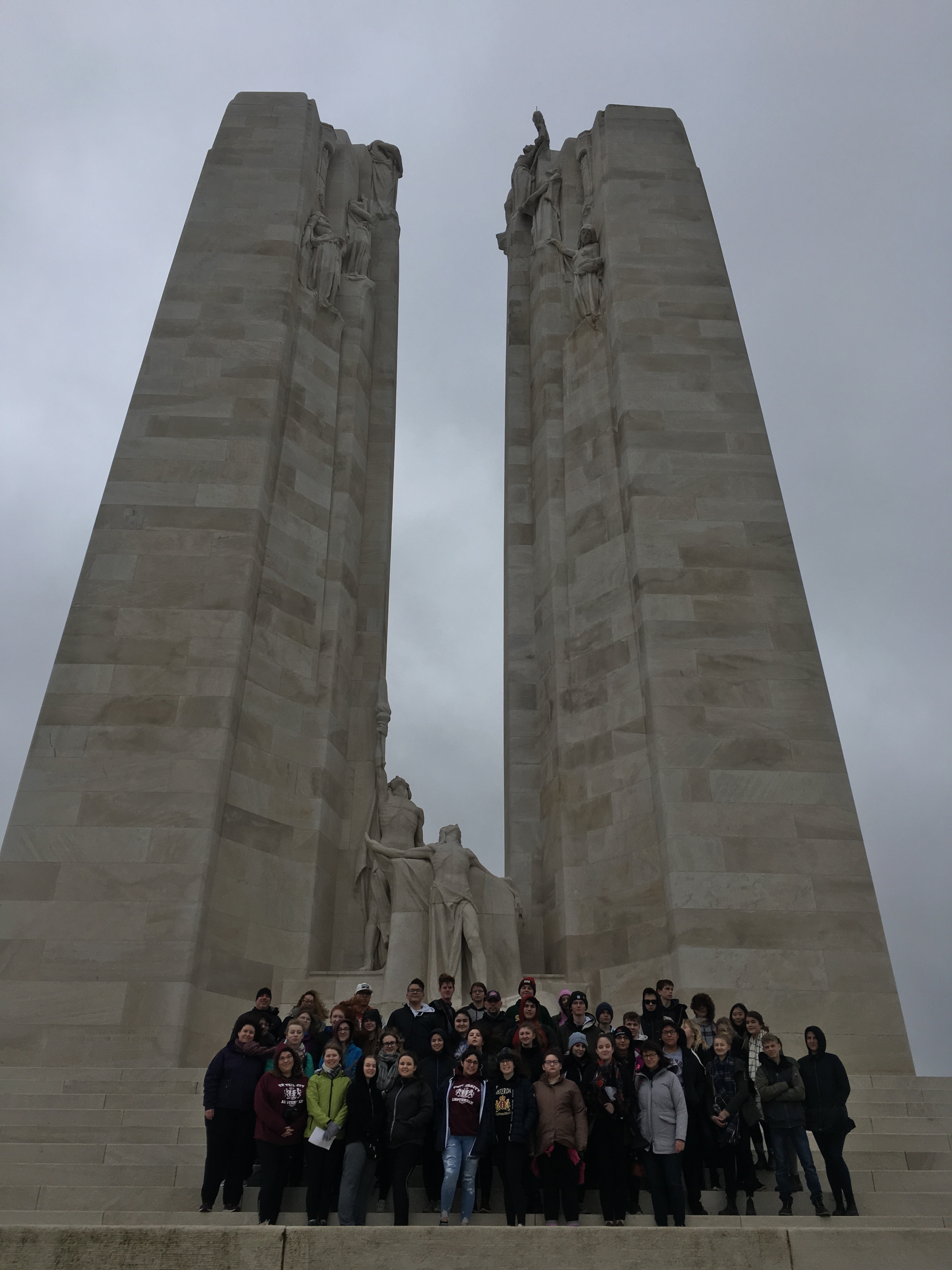 We had a brief prayer service on the back side of the memorial, before proceeding to the front for a group photo. Then the kids had some time to wander around, explore and take photos. This is where we were able to experience the full-force of the “light breeze” that was blowing. It was crazy how windy it was on the top of the hill, but it certainly didn’t dampen our spirits. I think it was important for them to see it, and I think that every Canadian should visit this hallowed ground if they can. The sacrifice of these and other soldiers will not be forgotten if we keep the history alive.