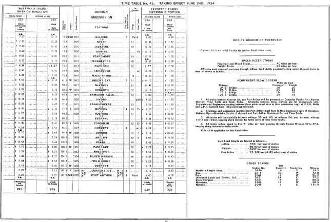 CNR Dorion Subdivision Timetable, 1934.