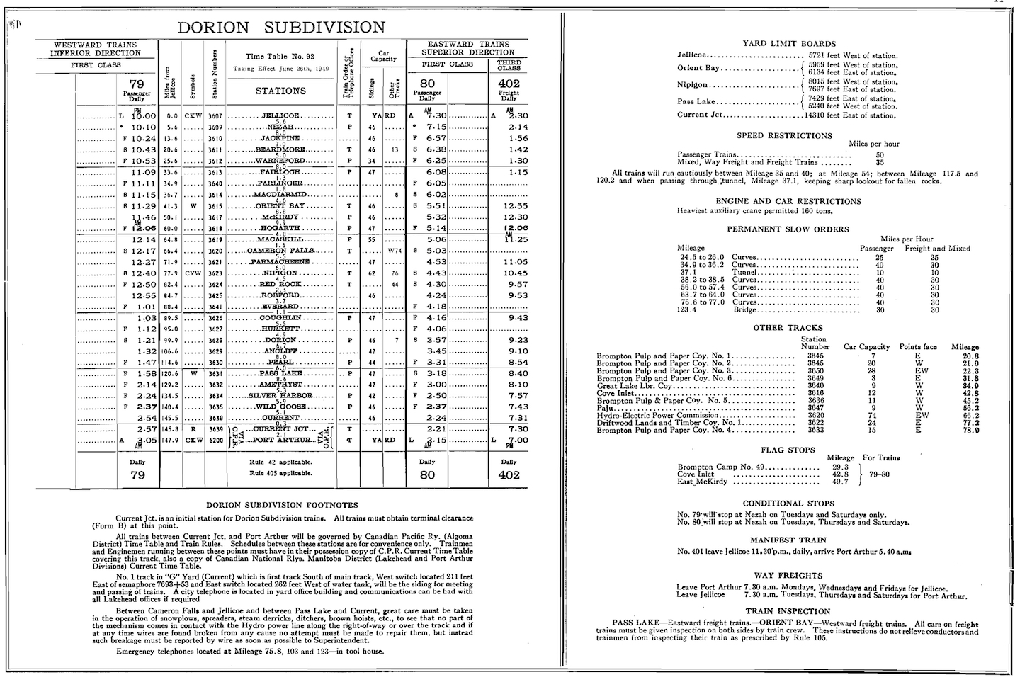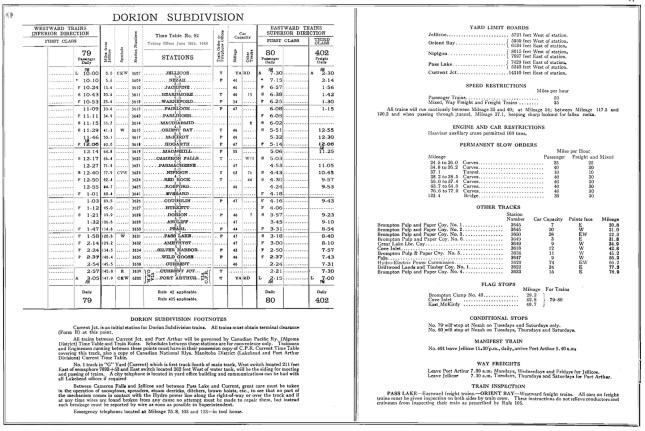 CNR Dorion Subdivision Timetable, 1949.