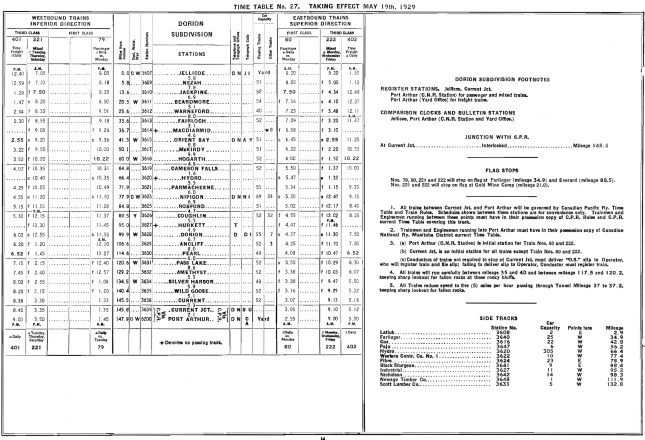 CNR Dorion Subdivision Timetable, 1929.
