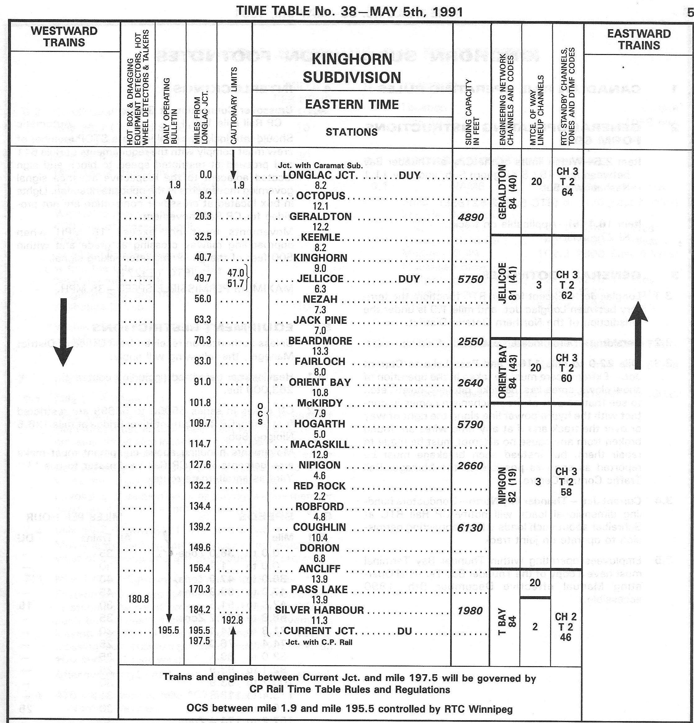 CN Kinghorn Subdivision Timetable, 1991.
