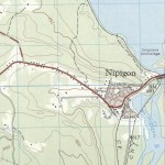 Nipigon, often written as Nepigon in the 1800s, was located at Milepost 77.9/127.6. It was the major stop on the line between Jellicoe and Port Arthur, sporting a large siding, water tank, coal facilities, wye and station. Gradually reduced in size, the siding remained until prior to 2005. The water tank was removed in 1958.