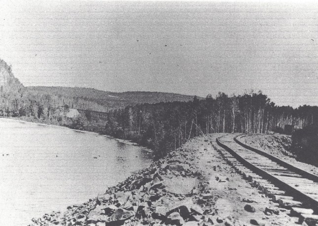 Grade just south of the Postagoni River with the trestle visible in the background.