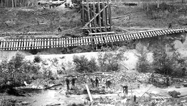 Red Rock CPR spur construction over CNR, 1937. (Red Rock Public Library)