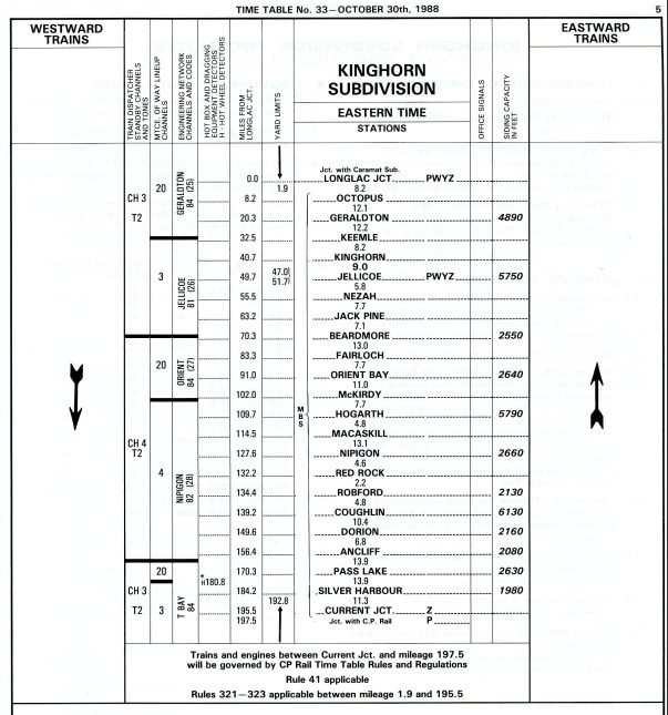 CN Kinghorn Subdivision Timetable, October 1988.