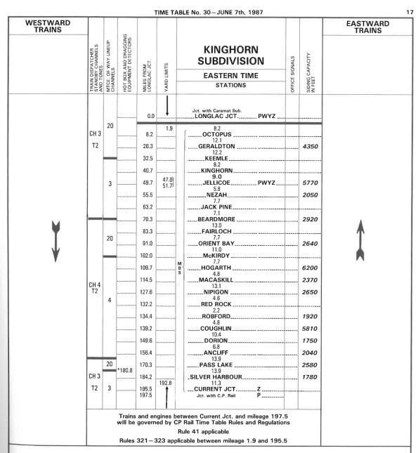 CN Kinghorn Subdivision Timetable, 1987.