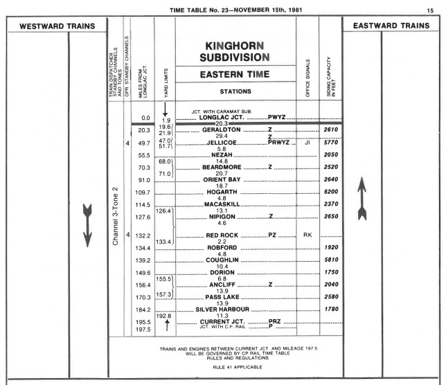 CN Kinghorn Subdivision Timetable, 1981.
