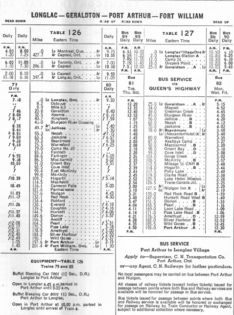 CNR Timetable, 1956.
