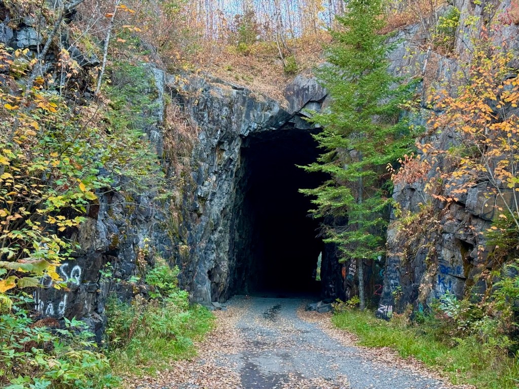 Sadly, the line was abandoned by CN in 1994, and the second set of photos were taken shortly thereafter in 1996. Today, the tunnel is one of the most visited former rail locations in the area (though a permit is required from the forest management company that now owns the line). Due to the vegetation growth, the view of the 1909 photo is impossible replicate.
