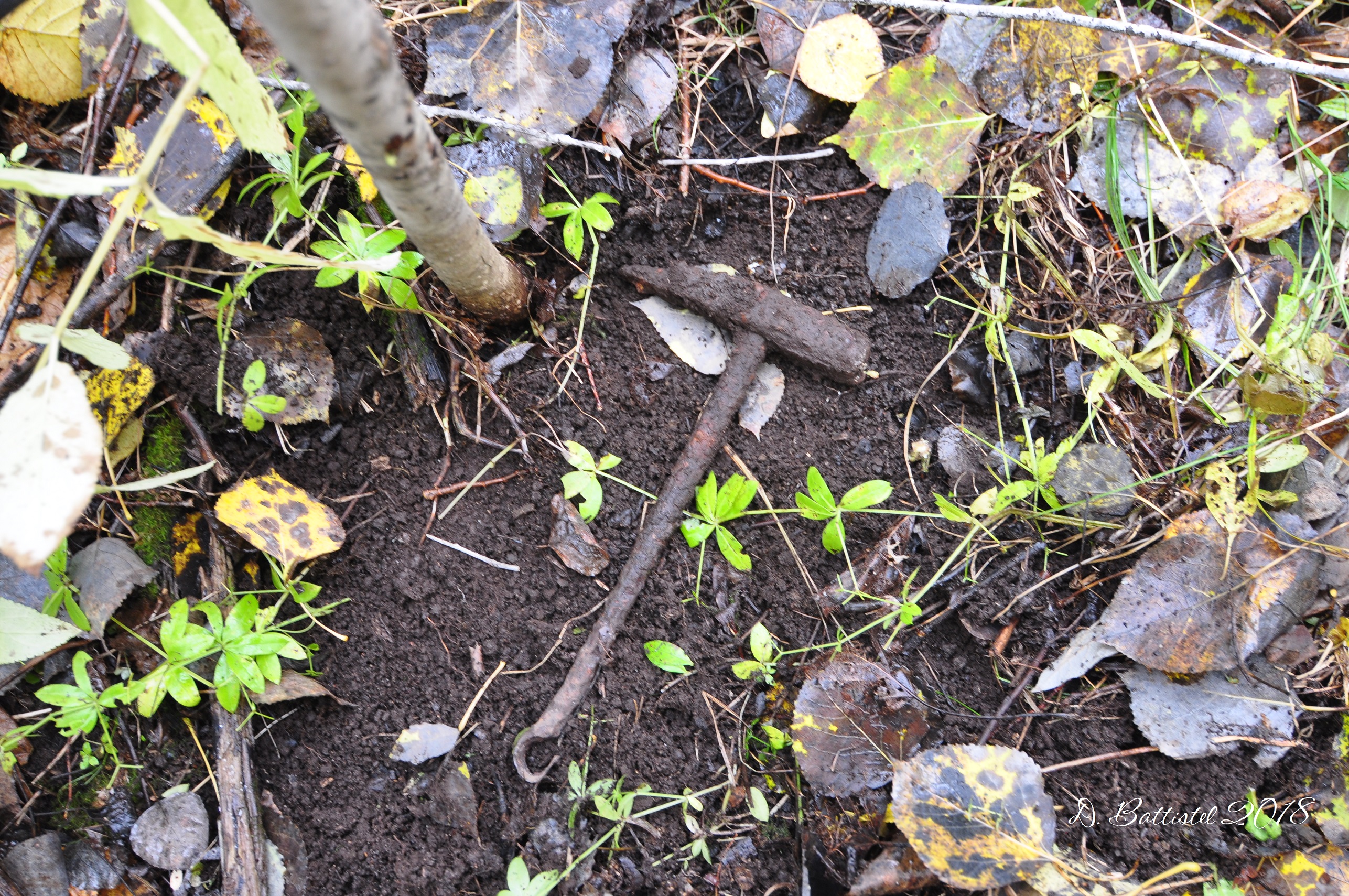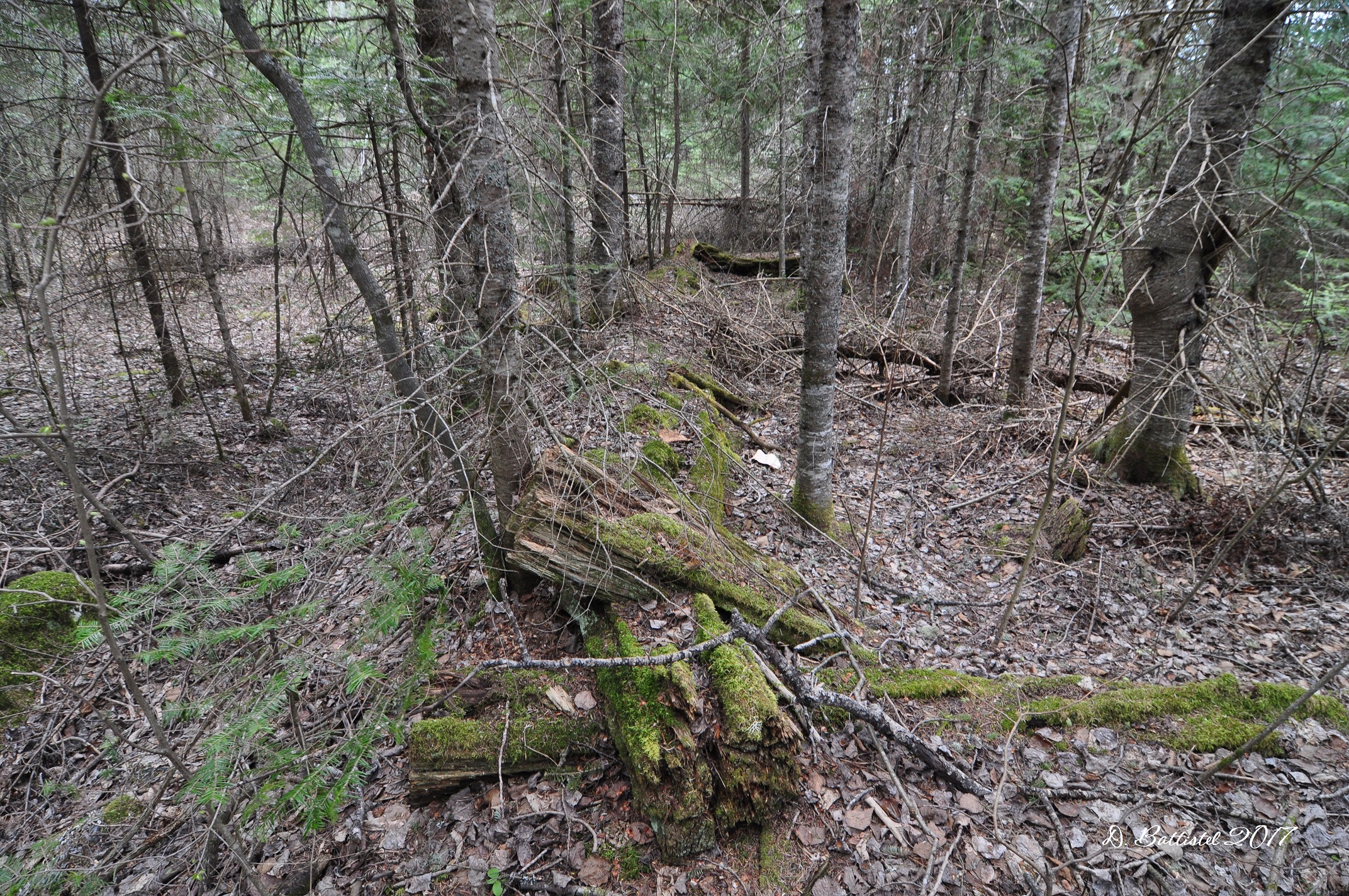 Getting to Camp 8 requires quite a bit of “bushwhacking,” which was not particularly easy given the deadfall in the bush and the fact that it was still wet. Just after 11am we arrived at the camp and after a quick look at one of the debris fields, we started taking measurements. Ideally, I would love to have a sub-metre accuracy GPS, but the cost of such a device makes it prohibitive. I tried doing it the old-fashioned way, triangulating two structures to a central reference point. It didn’t really work out the way I thought it would, but it was worth the try.