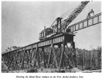 Under the direction of James A. Whalen, construction on the concrete substructure began on May 3, 1912, and was completed by July 30, 1912. Subcontractors Kennedy Construction Company poured approximately 3,600 cubic yards of concrete and utilized approximately 2,000 piles for the foundations. The steel superstructure was built by the Canadian Bridge Company of Walkerville, Ontario. The first span was placed on August 20, 1912, and the last span, or most easterly, was in position by December 28, 1912. The total of weight of steel for the spans and towers was approximately 5,000,000 pounds. The viaduct was designed under the supervision of Walter P. Chapman, Bridge Engineer, Mackenzie, Mann and Company and cost nearly $350,000 ($8-9 million in today’s dollars).