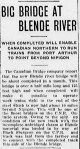 While the Blende River is nothing more than a small creek (it is indicated as such on road signs), the valley through which it passed required the construction of a large structure. This was a direct result of the route that Canadian Northern was forced to select through the Pass Lake area.