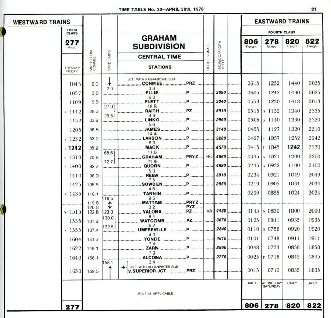 CN Graham Subdivision Timetable, April 1978.