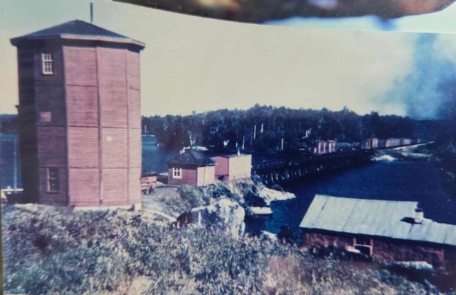 Eva Lake bridge and water tank, 1954. (J. Arthur)