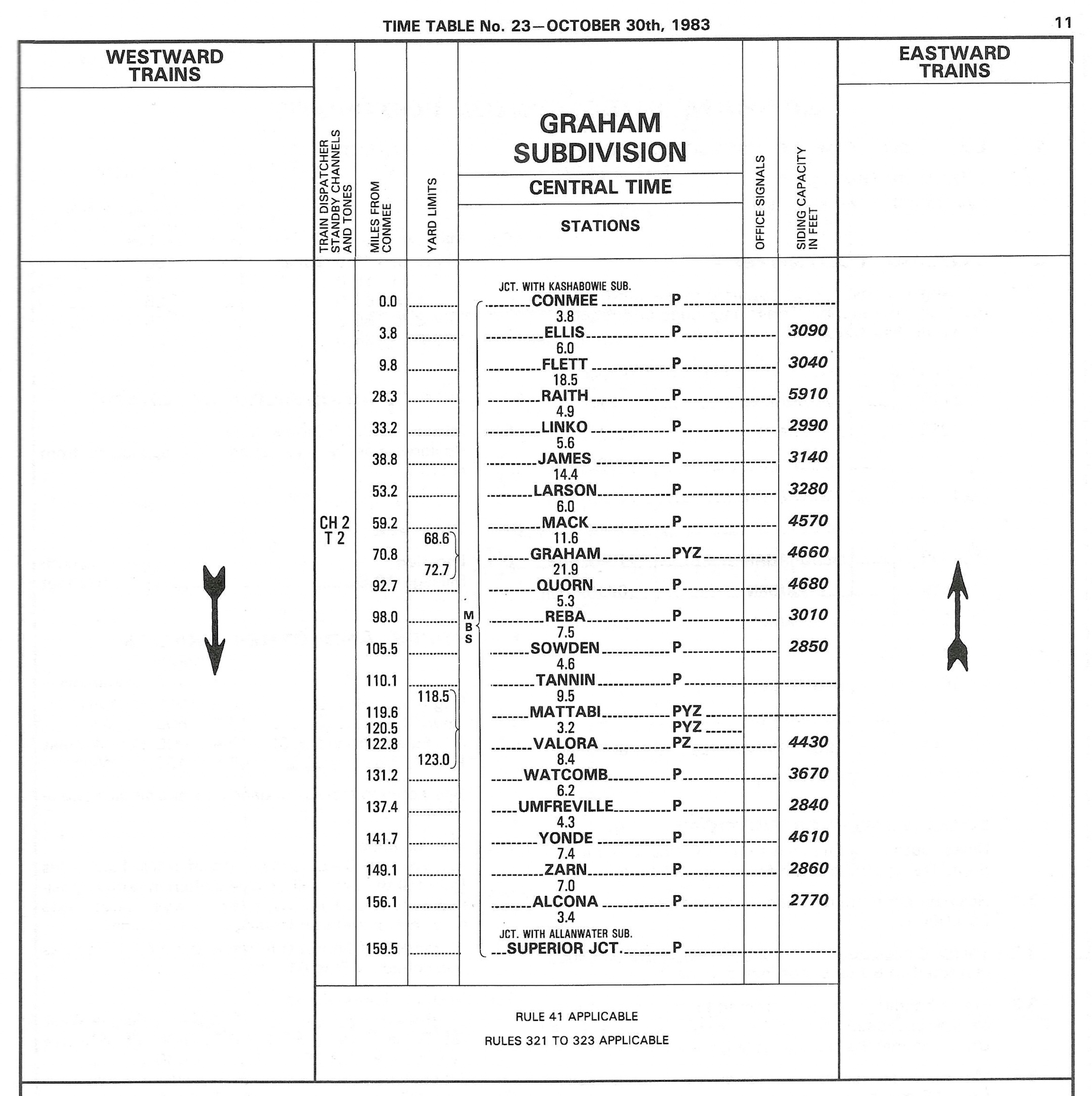 CN Graham Subdivision Timetable, October 1983.