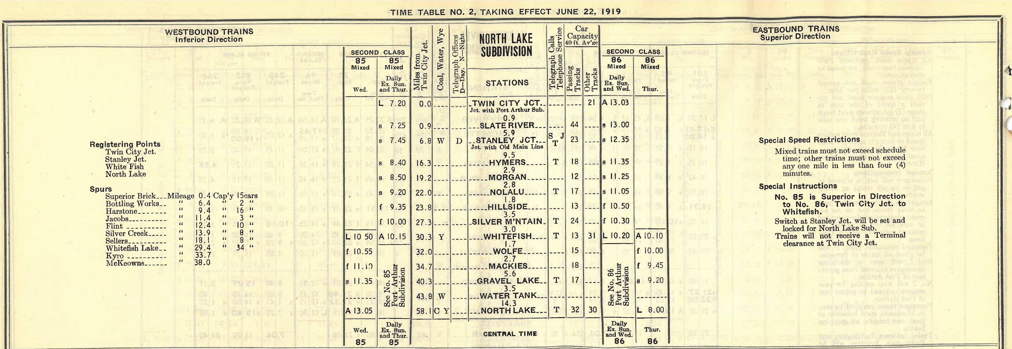 CNR North Lake Subdivision, June 1919.