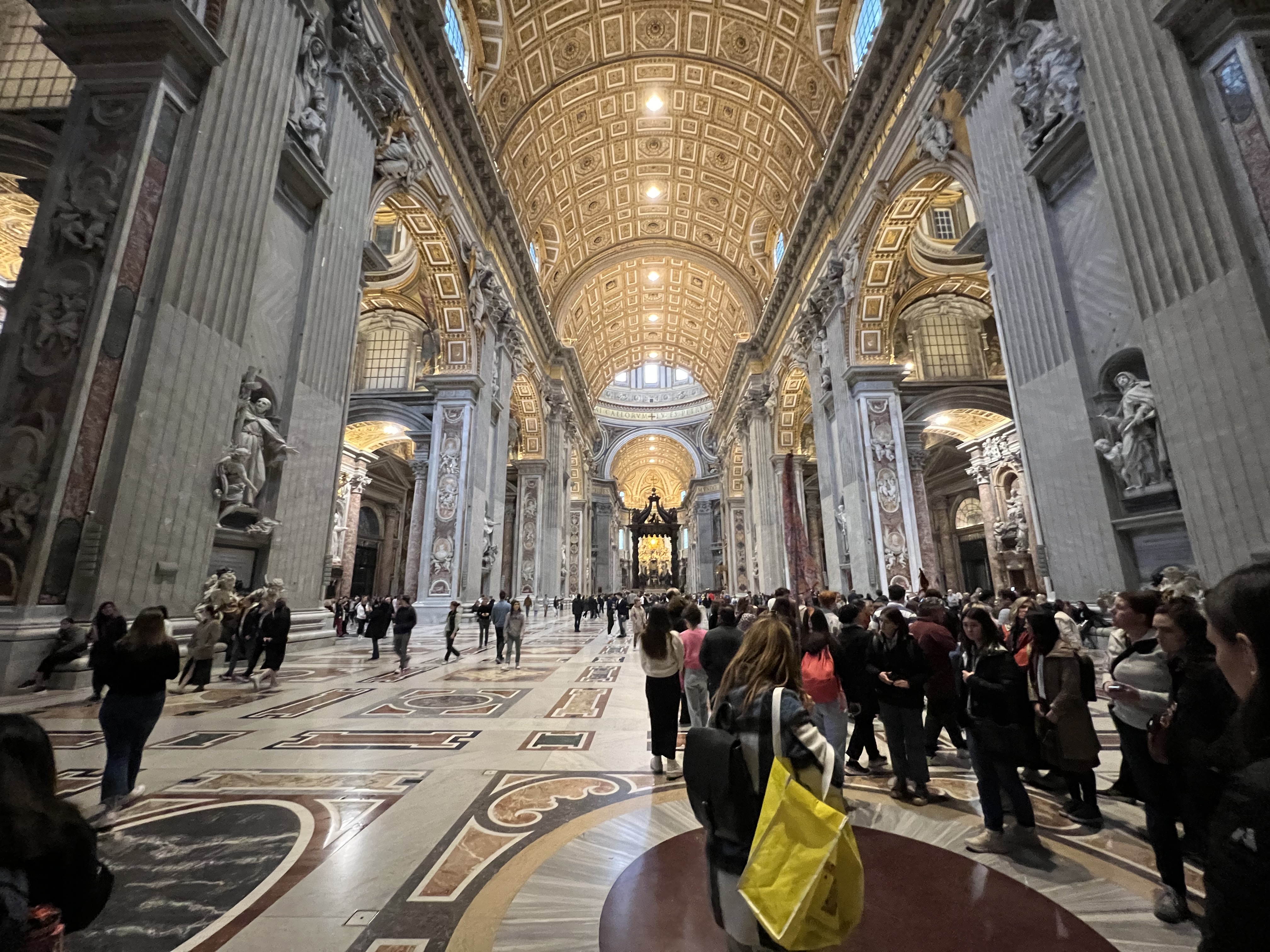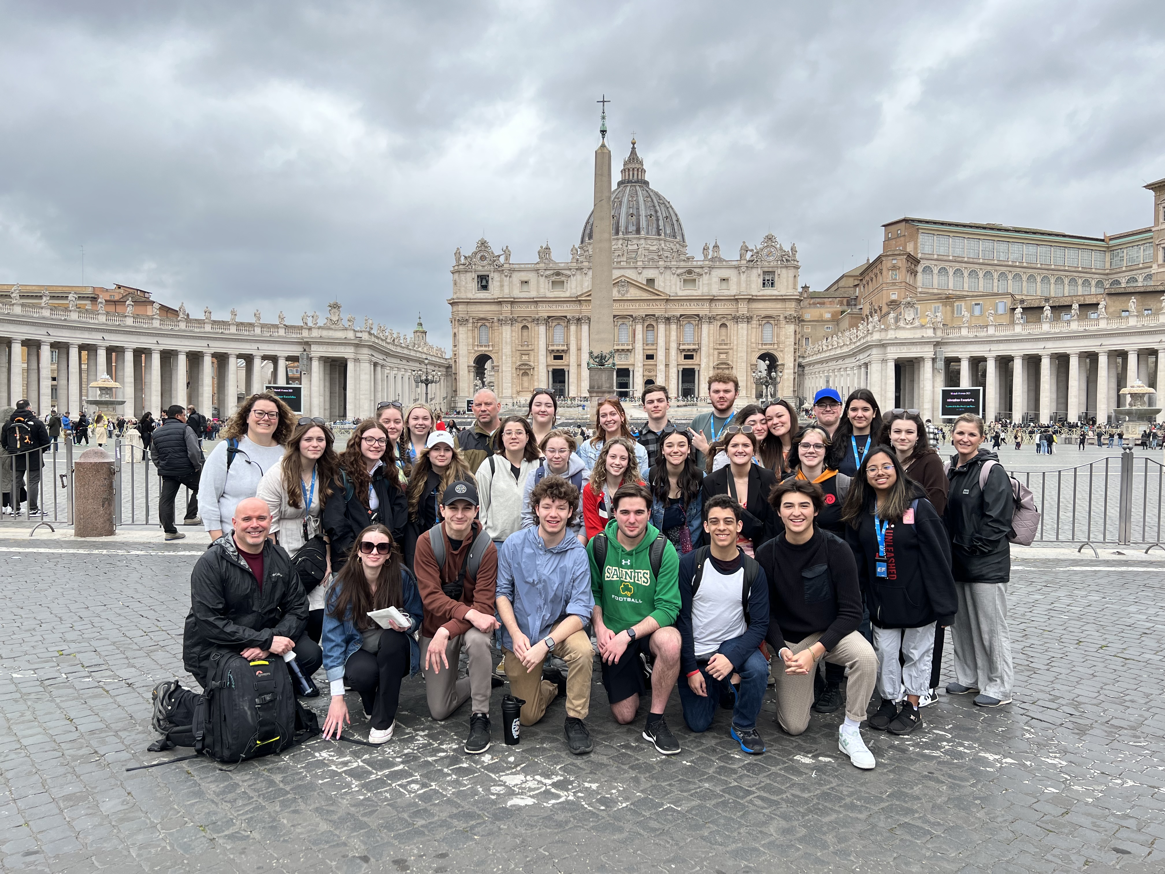 From the Sistine Chapel, we made our way to St. Peter’s Square and into the basilica, the most famous church in the world. I had seen it before, but maybe 18 year old me didn’t appreciate the amazing structure what what it is. It is unbelievably jaw dropping with its decor and architecture. The photos I took turned out well, so I hope that the video was equally fantastic. Before we left, we had a chance to visit the gift shop and then posed for a group photo in front of the square.