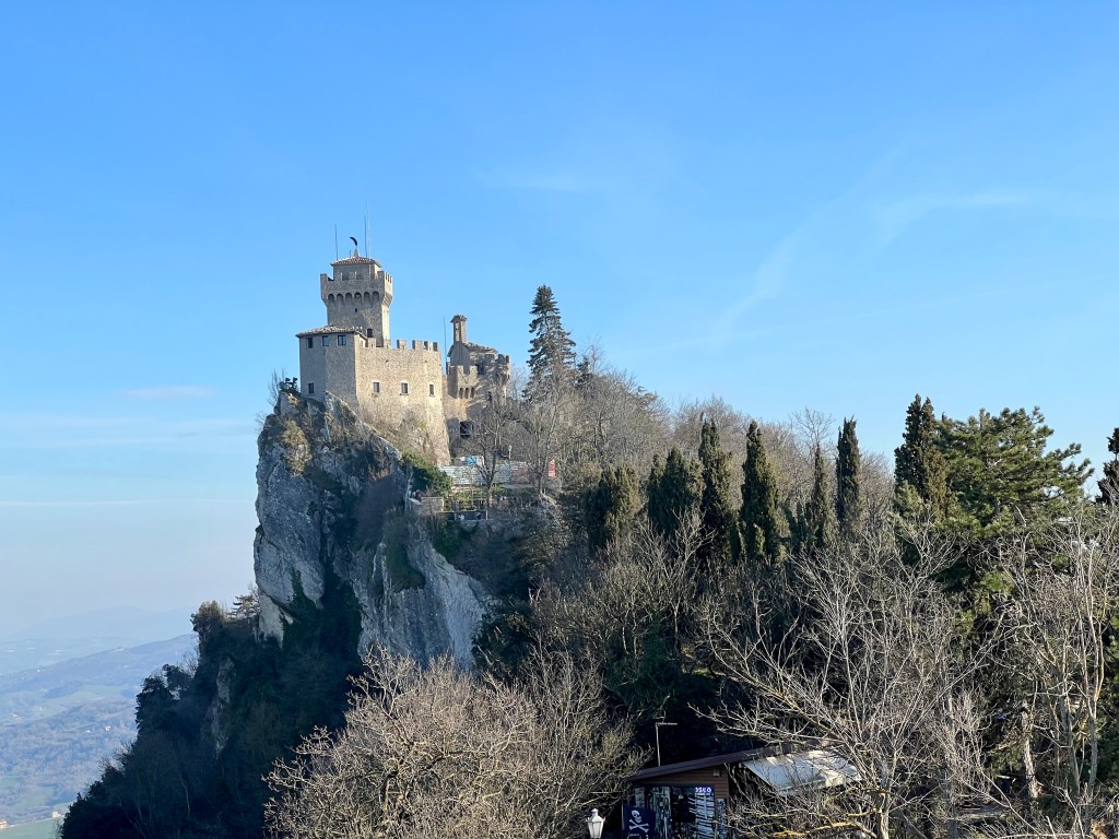 After reboarding the bus, we made our way 30 minutes to the west to San Marino, which is it’s own small country surrounded by Italy. I knew a bit about it, but I had no idea most of it was on a mountain, so we had another slightly white-knuckle trip up, with Salvatore once again expertly easing the bus along the winding roads. Kent gave us a quick history lesson and then we were turned loose for another two hours to explore this unique country.