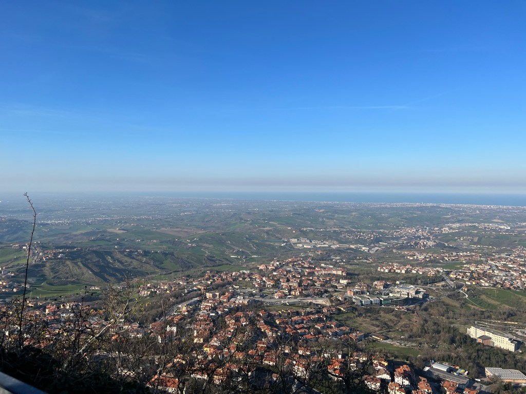 What an amazing place! I wish we had more than that limited amount of time. The part of the country that is on the mountain is one giant castle with many smaller castles inside it as you work your way up. There are countless shops selling everything from designer purses, to clothing to air soft guns. The views though, the views are unbelievable! There are so many vantage points, and you begin to understand the strategic importance of this place. Our elevation here in Rimini is a seal level, while the top of San Marino rises to more than 720 metres or 2300 feet. I must say, as someone who is not good with heights, there were spots that gave me anxiety even approaching the edge. I took a ton of photos and video.