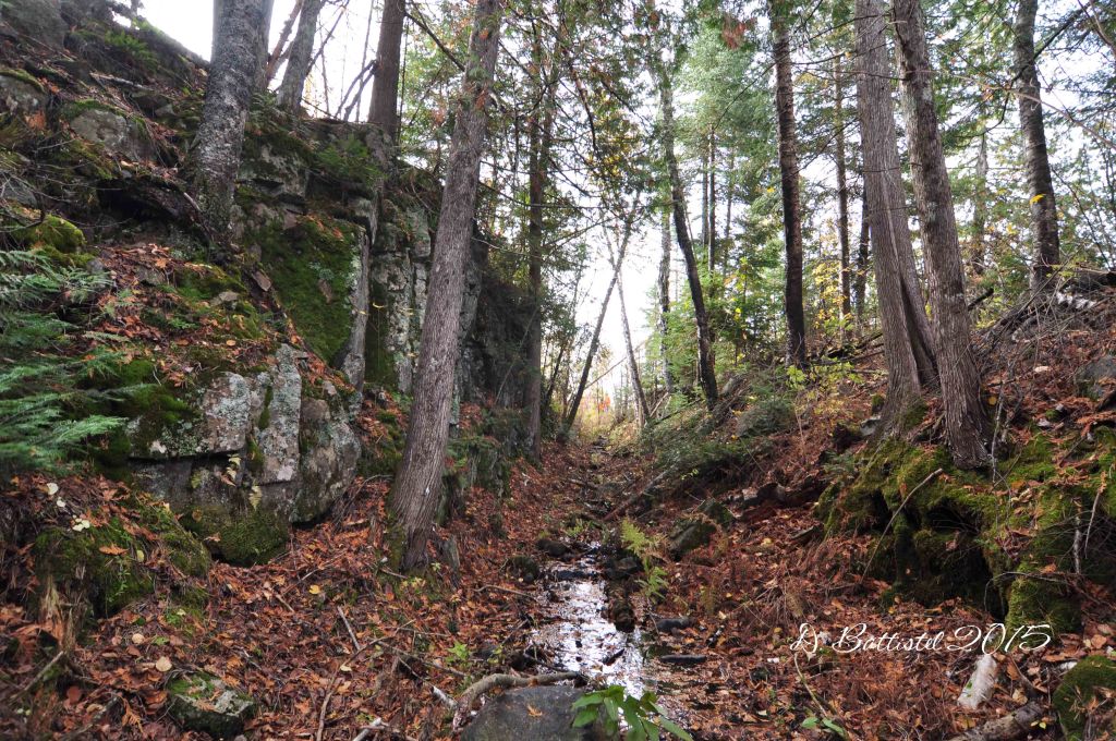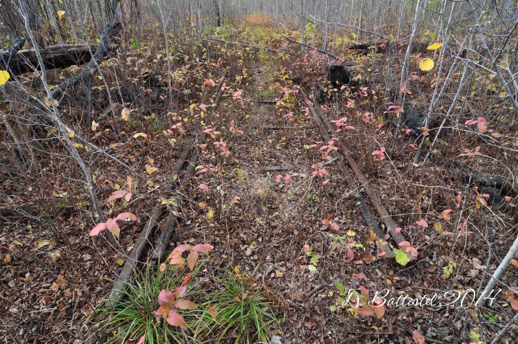 The last hike I did was actually two separate hikes in an area known as the “Moose’s Nose.” It’s rather interesting nickname for a section of railway, but the name certainly fits. It was formerly part of the GTP, which had very strict requirements regarding its grade. In order to negotiate the grade west of Thunder Bay, the engineers built several big sweeping loops which would allow the railway to climb and keep the grades in check. This area near Mapleward Road in modern Thunder Bay, acquired the nickname because of its appearance; it’s also referred to as the “Devil’s Elbow.” So the explorations I did were hikes n’ bikes, walking part of the grade and biking back. Besides its layout, the grade here goes through a very pretty area and also contains some neat structures, particularly a number of concrete culverts that were built in 1917. Unfortunately, only two of the original three remain, as one was removed and replaced with a steel culvert…sad.