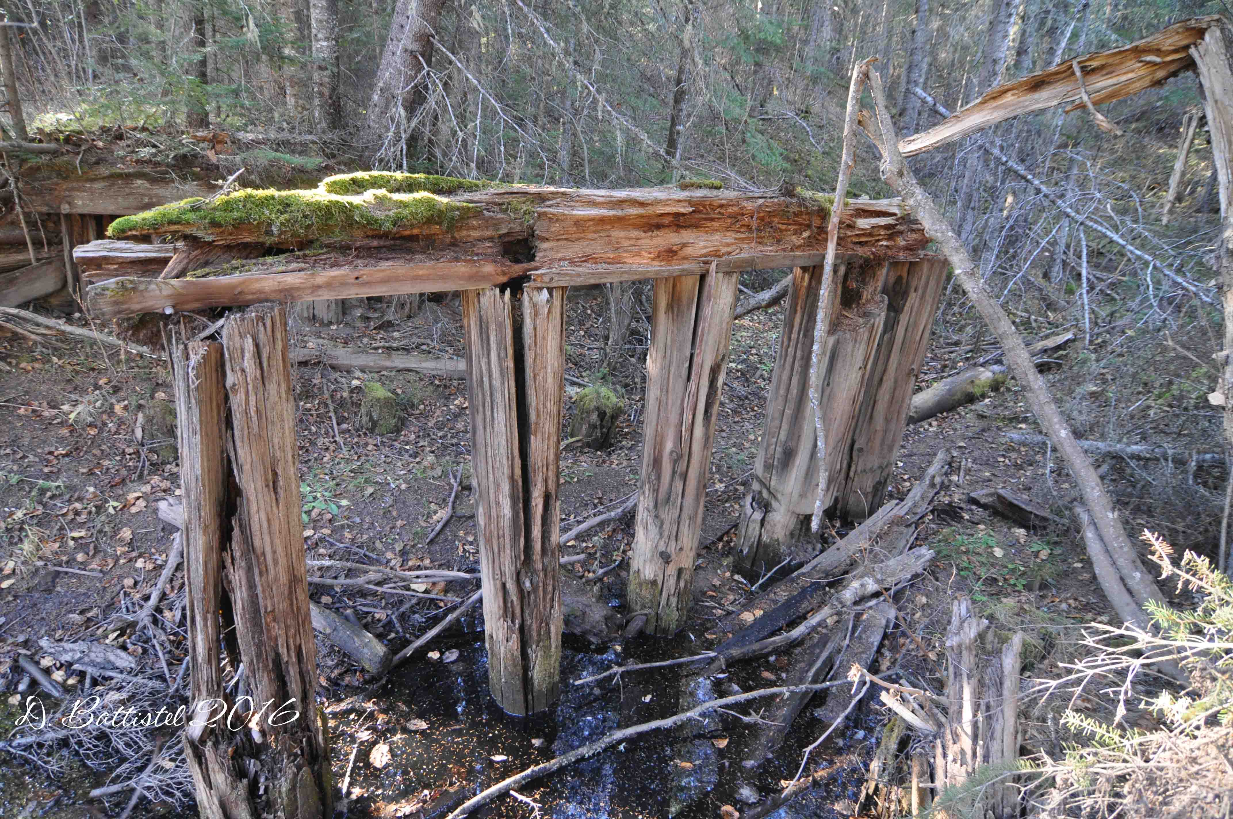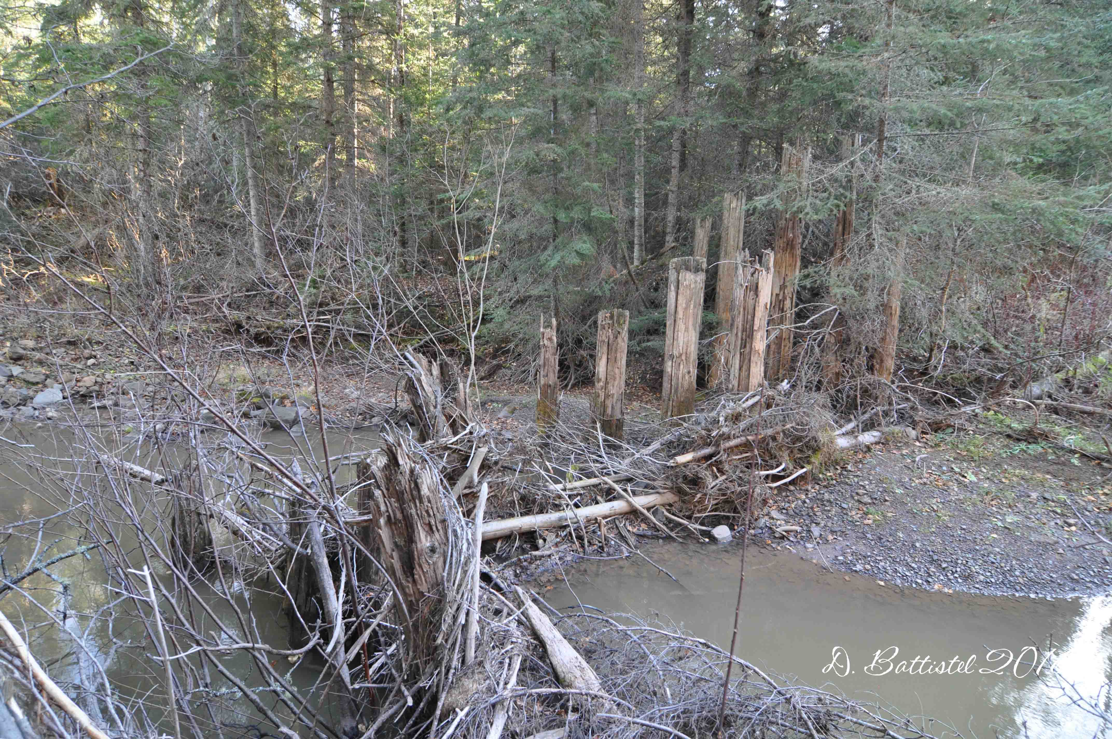 My first visit to this area occurred back in that inaugural year of my research on the railway in 1994; I was absolutely stunned by all the remains of the bridges I found. Without Google and any decent maps, I had no idea that the railway had crossed the Beaver Creek 12 times in this 4km section. In some spots, there were just cut-off pilings left, while in one in particular, all the bridge lacked was the decking. I went back to this area in 1995 and then again in 2010. I really wanted to record what was left of those bridges in HD video.