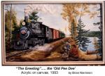 This past week I received some much anticipated mail from Library and Archives Canada. Back around Christmas time I was contacted by local artist Brian Nieminen regarding the railway. Brian has had a long history with the railway; in 1993 to mark the 100th anniversary of the opening of the line, he created a painting of the railway entitled “The Greeting…the Old Pee Dee.” Since then Brian has wanted to paint an image of the most famous locomotive on the line, the Black Auntie.