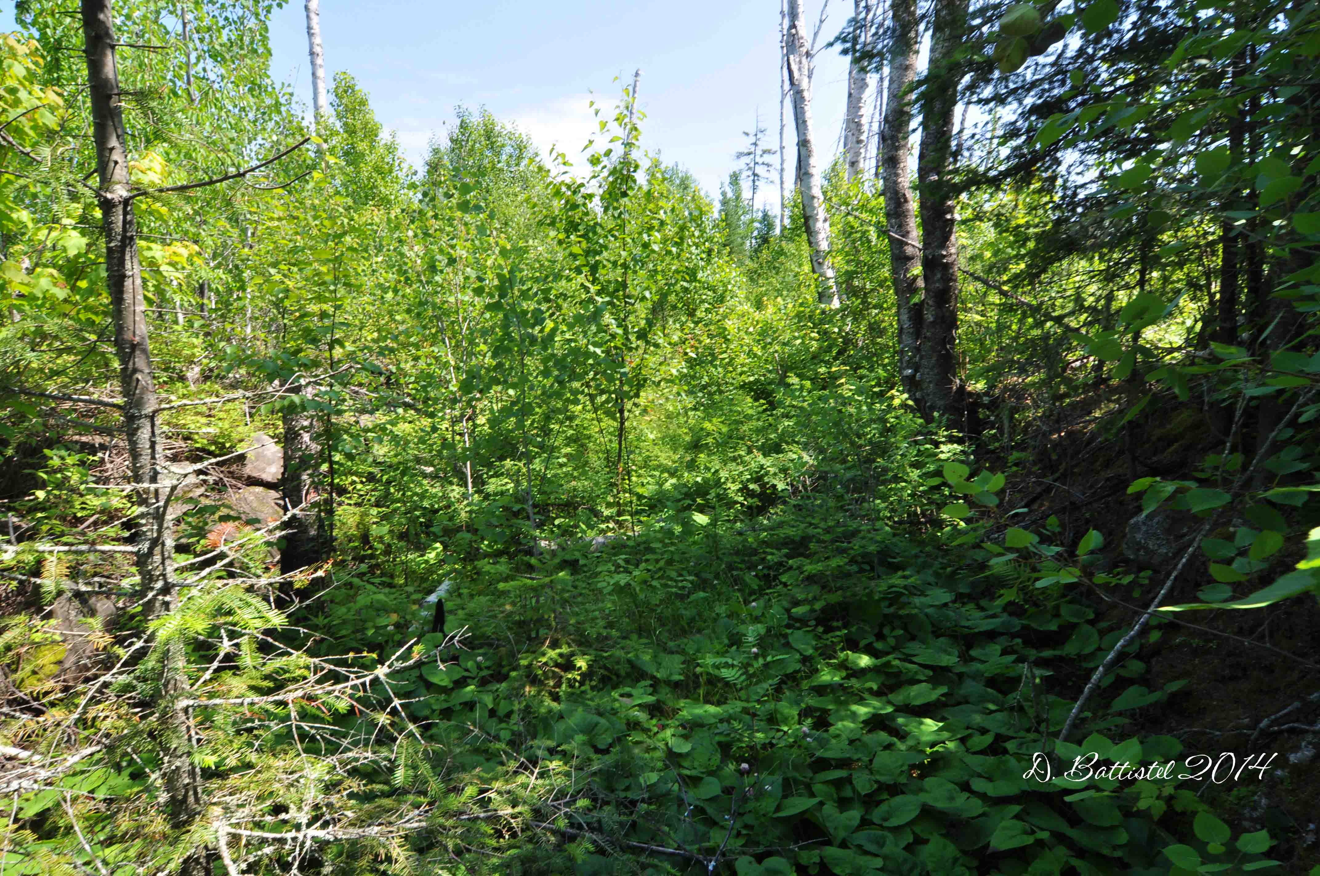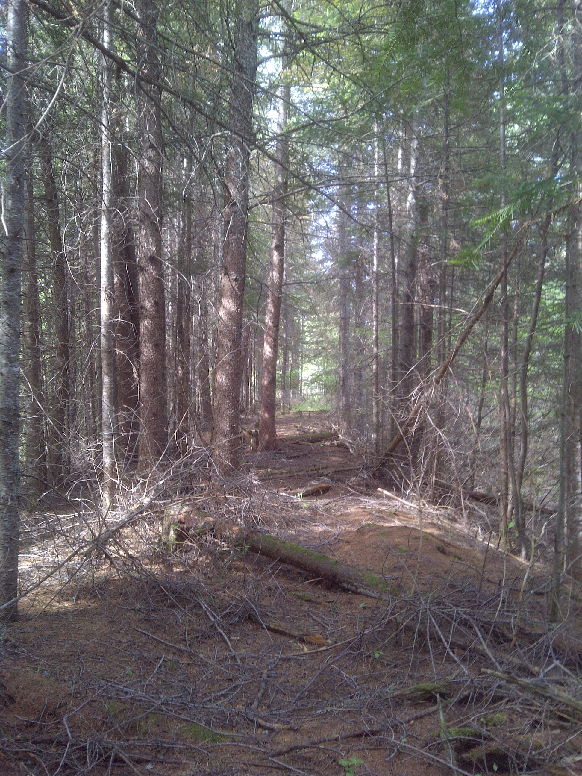 As I headed west the weather took a turn and it began to drizzle; I’m not sure if you can picture what it was like, but hiking along this overgrown railway, soaking wet and tired was not a nice position to be in. A short time later I entered a long rock cut and was amazed to find ties still in their original location. After that I was along the north shore of a small lake, the grade barely above the waterline. On the western shore of this lake was the site of Gunflint City, which was the camp for the mining operations in the area back in 1892-1893. After another 400 metres or so, I found my way blocked by a flooded rock cut, so I headed north and got on the Kekekabic Trail. With the rail coming down and thunder booming in the distance (and also being completely drenched), I decided to call it a day and make my way back via the Kekekabic and the Gunflint Trail; the missing parts would have to wait for another time.