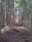 The next day I headed over to the Round Lake Road to try and trace the railway as it passed through a switchback and made it’s way to the Paulson Mine. I initially had some difficultly finding the grade as it looped through a swamp (I would have the same problem years later) so I ended up searching for a rock cut that was supposed to be just beside the road. I did find it and followed it along to the location of the first of two trestles in the area, but I could not find the western side (in 2011 I would determine that there were in fact two rock cuts and two trestles, one slightly above the other). I picked up the grade a little farther west and could see the lower arm of the switchback under the forest canopy (my plan to follow it later in the day would be frustrated by rain).