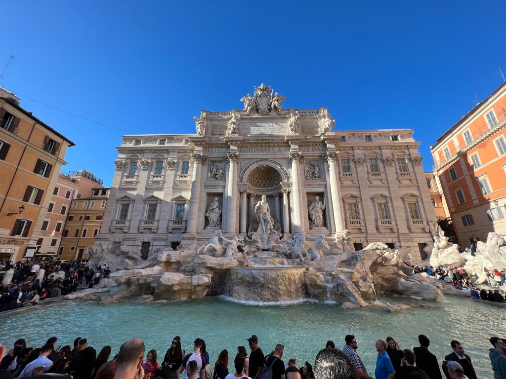 It’s now 5:00 local time and I finally have some time to sit. After we landed, we had a bit of a journey to get through customs, collect our bags and meet our Tour Director Kent in the concourse. Then we boarded a bus which brought us downtown for a walking tour of Rome. We started near the Ponte Sant’Angelo to the Piazza Navonna, where we stopped for a bite to eat. From there it was to the Pantheon, which was built during the Roman period and is the longest continually used building in the world. Then it was off to the Trevi Fountain, which was an absolute zoo, since it’s Sunday and there was plenty of people out and about. Now we’re waiting for a pizza supper after quite the hike from the fountain.