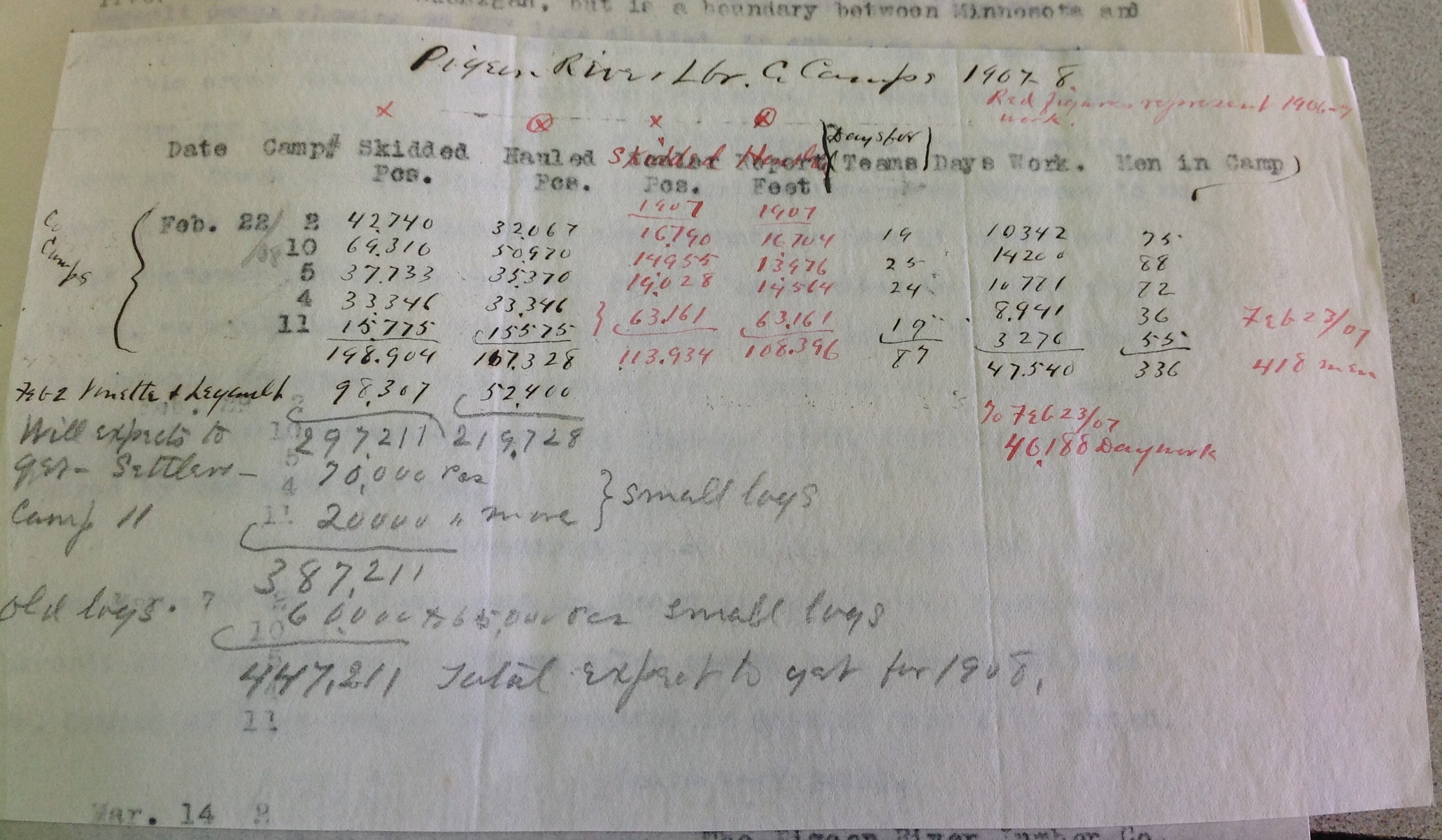 I was so excited to open the package and see what was inside. Turns out that about 60 to 65 percent of the material is useable historic documents, while the rest is just railway notices and forms. Some of the useable stuff is pure gold; there is one customs manifest of logs for the Pigeon River Lumber Company from 1908, while there are several customs reports of coal for the PRLC’s locomotives from 1906. There are many mail reports, as well as shipping forms for goods transported between Port Arthur and the various stations along the line. All told, the papers date from 1906 and 1922.