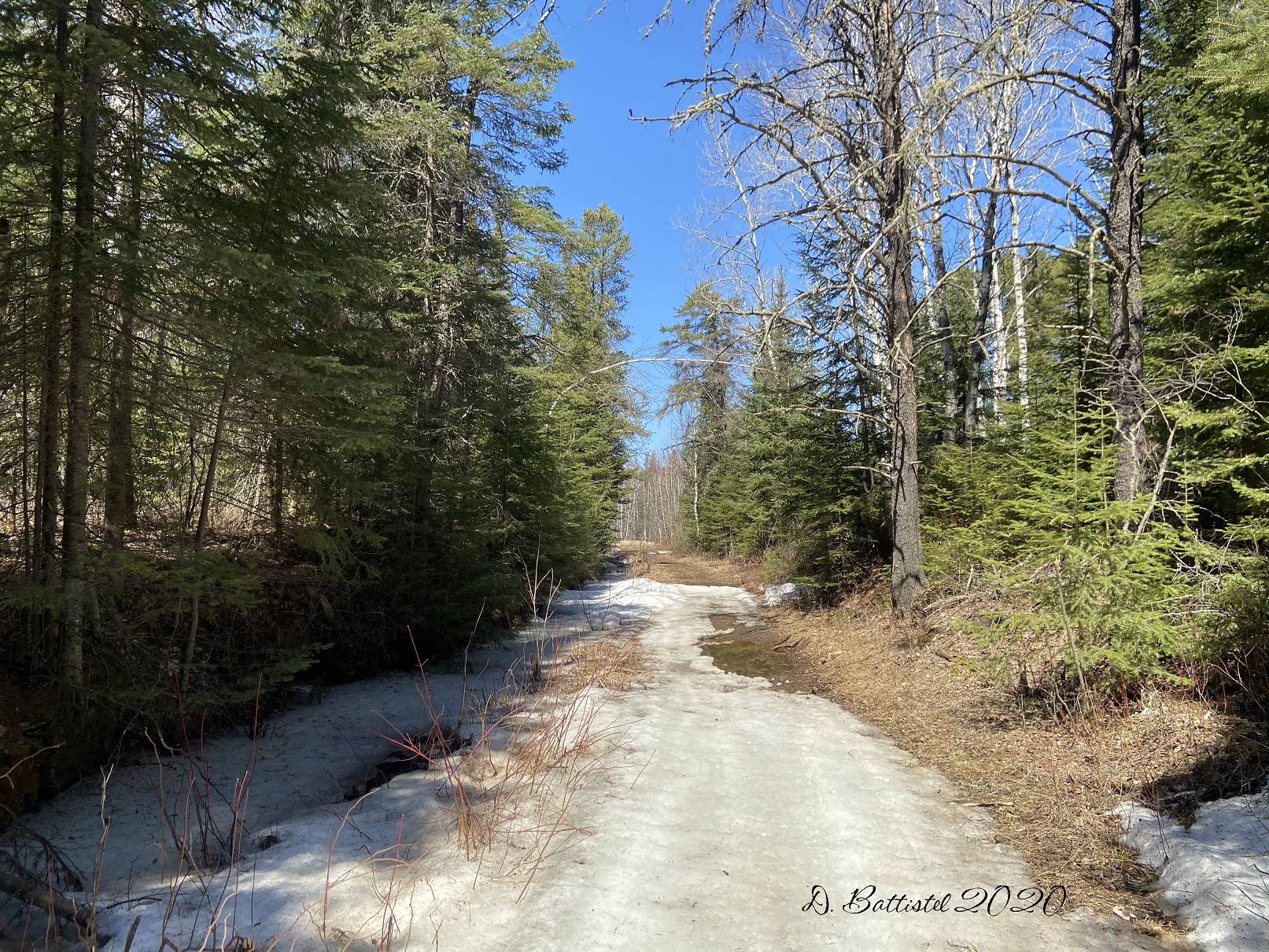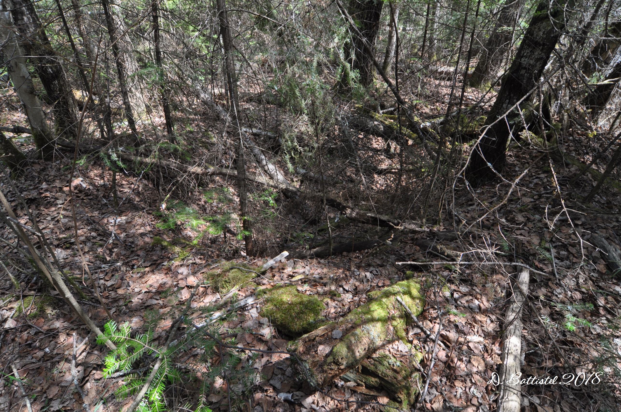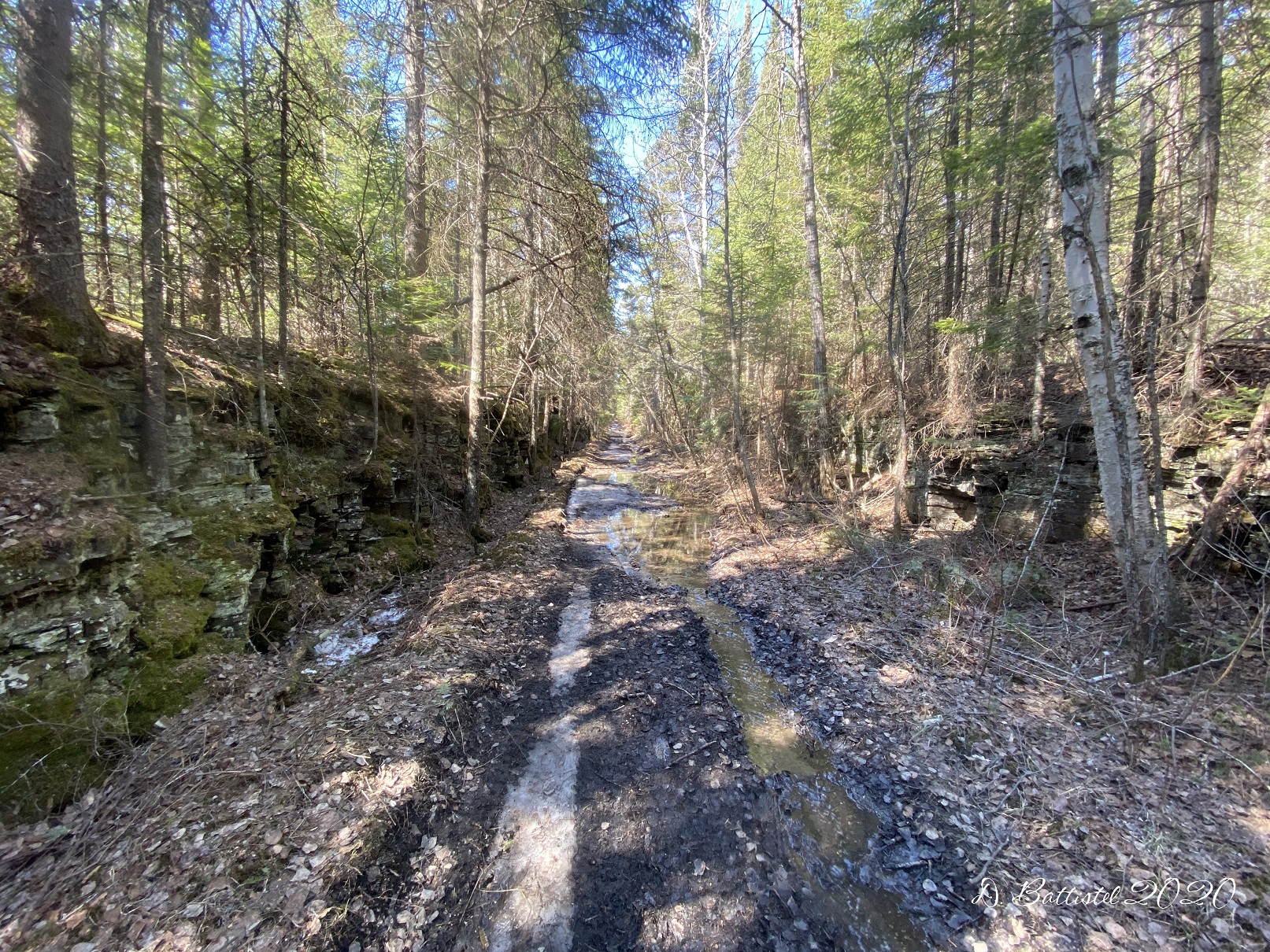 My first exploration of the day involved a 1 kilometre section of the GTP that was part of the 26 miles of line that was opened in 1908 and abandoned in 1924. I had been by this section several times, but never actually walked it. It starts at milepost 166 of the GTP and goes east until it becomes part of Forbes Road. It was a very beautiful section to walk, almost picture perfect. There were many cuts and even some ties still in their place. Gives a real sense of what it used to be like travelling this railway as it made it’s way alongside the Matawin River.