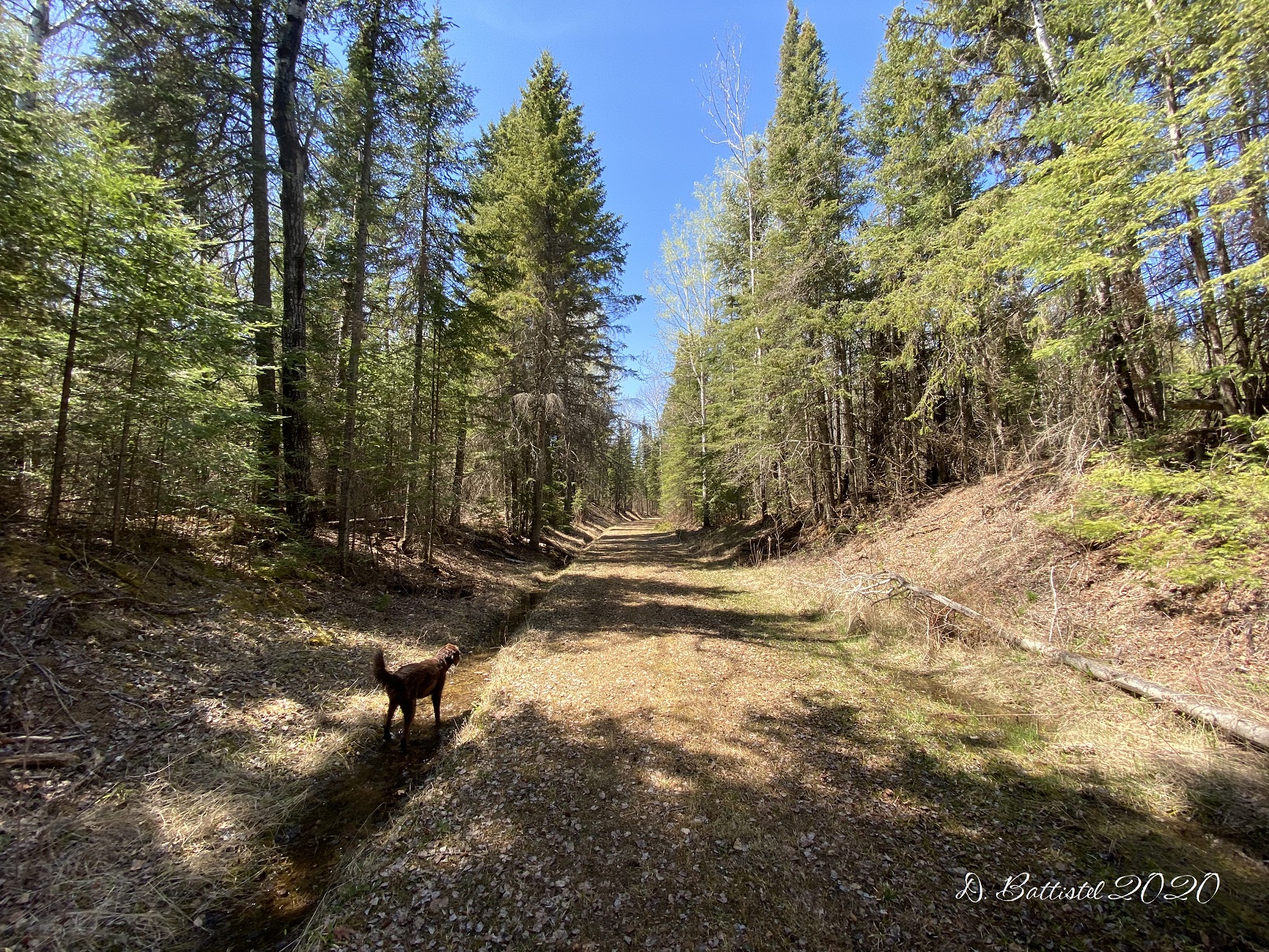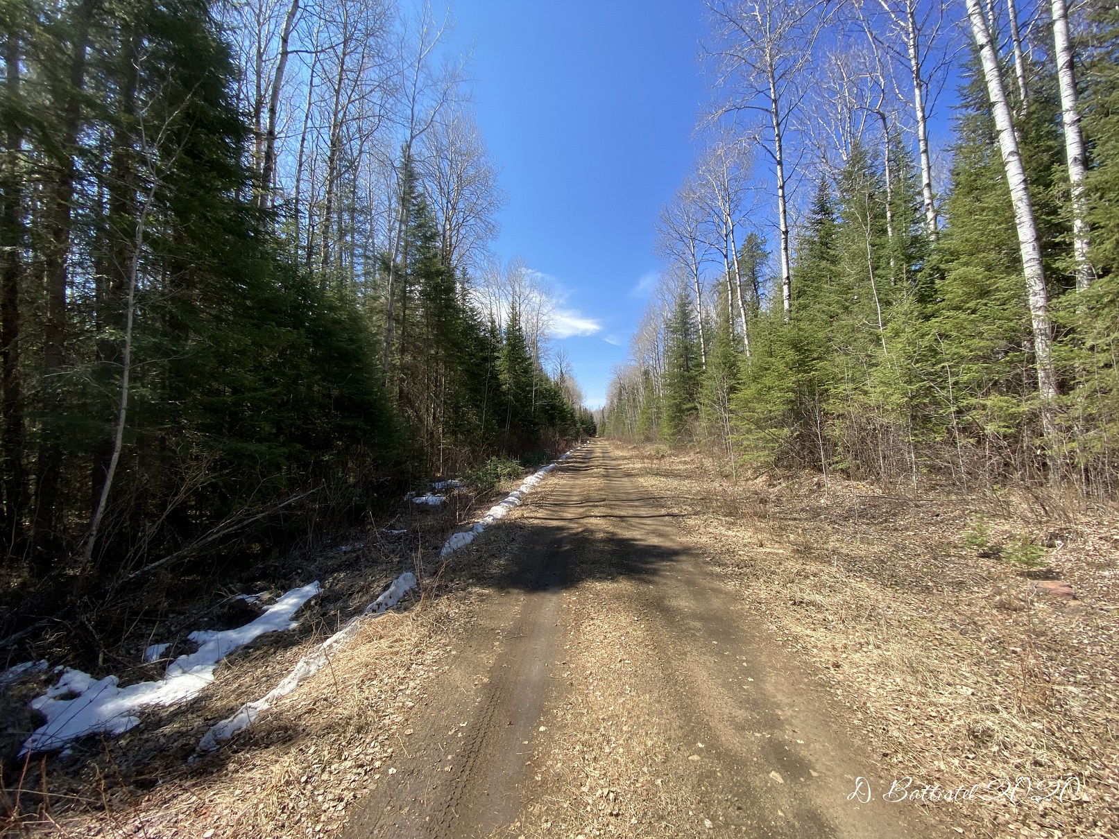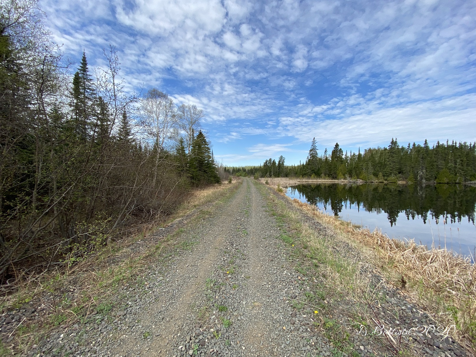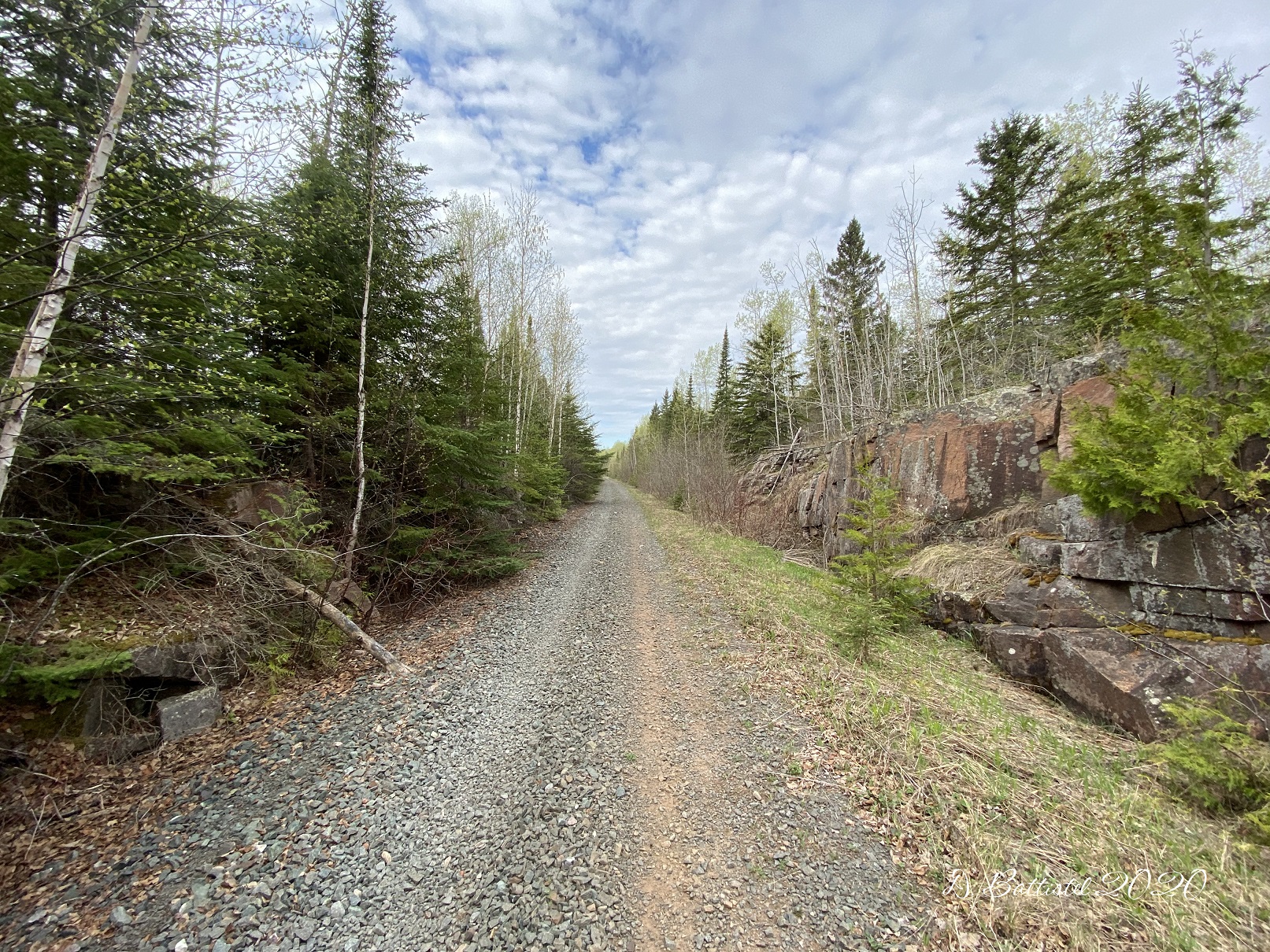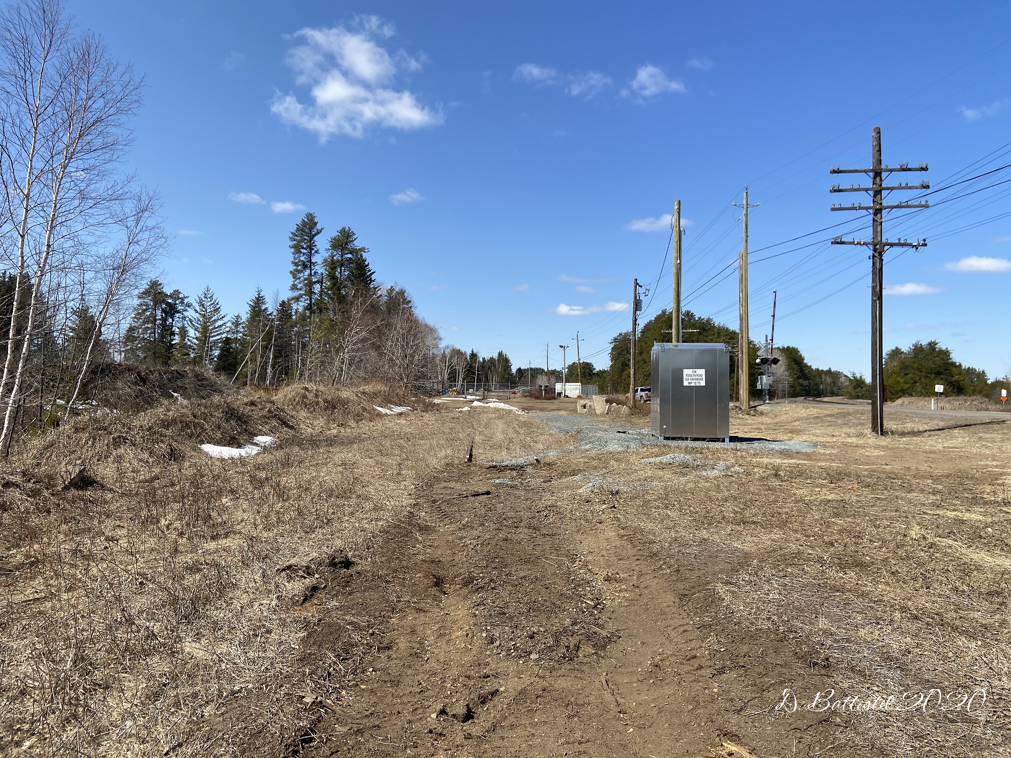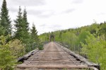 After shooting some pictures and video of the sides of the bridge, I turned my attention to the railway grade from the bridge back to where we had come in from, a road known as Sunshine Crossroads. The starting point is rather interesting, as it features unique junction. Here, the line from the bridge joins the old GTP lines and as you look east, you can see two grades; the newer one built by CN in 1924 and the original 1908 one built by GTP. From this point, it’s about 2.3km to Sunshine Crossroads, which I covered, as I have been doing recently, on my bike. It’s a nice area, but it has been wrecked in my opinion by logging that is going on alongside the grade. It’s kind of a shame. Anyway, you can watch the videos here.